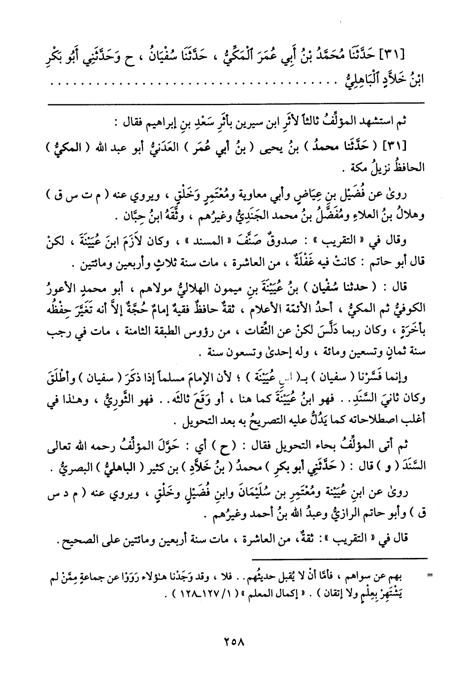 [٣١] حَدثَنَا مُحَمَّدُ بْنُ أَبِي عُمَرَ الْمَكِّيُّ، حَدثَنَا سُفْيَانُ، ح وَحَدَّثَنِي أَبُو بَكْرِ بْنُ خَلادٍ الْبَاهِلِي