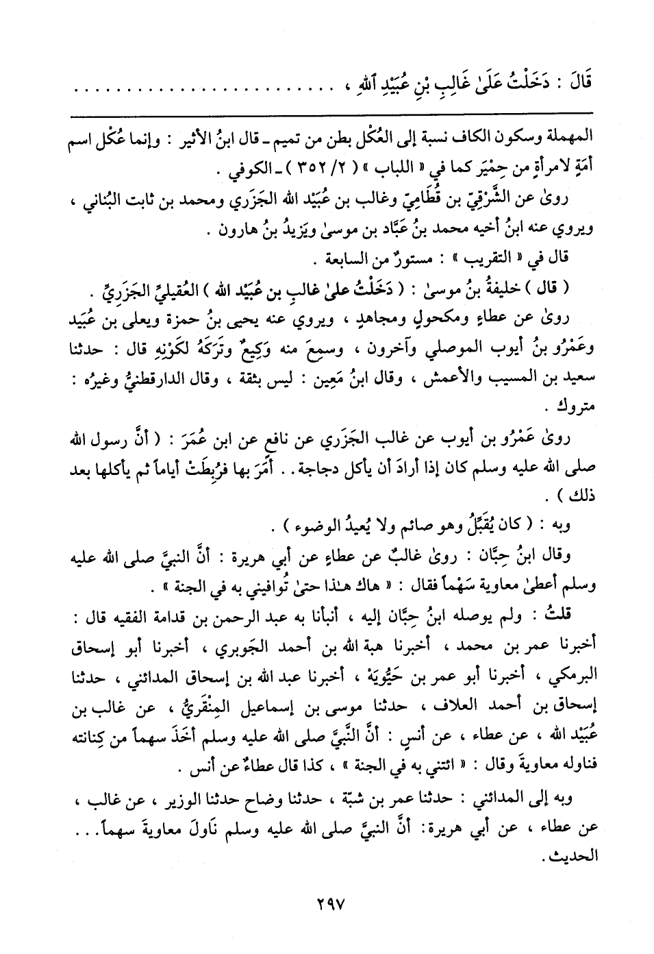 (قال) خليفةُ بن موسى: (دَخَلْتُ علي غالب بن عُبَيد الله) العُقيليِّ الجَزَري.