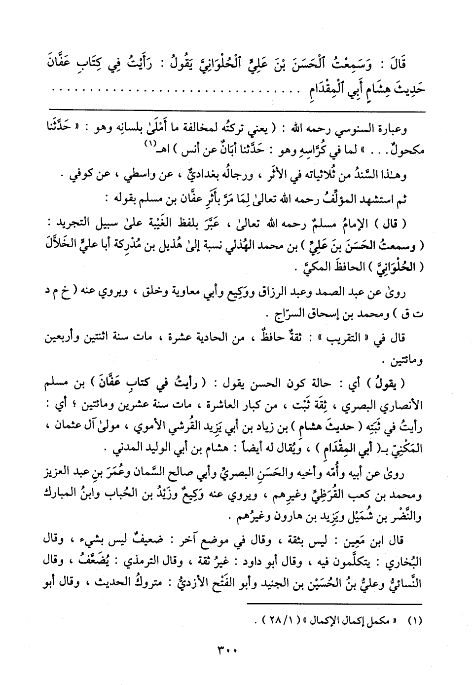 قَال: وَسَمعْتُ الْحَسَنَ بْنَ عَليٍّ الْحُلْوَانيَّ يَقُولُ: رَأَيتُ في كتَاب عَفَّانَ حَديثَ هشَامٍ أَبي الْمقْدَام