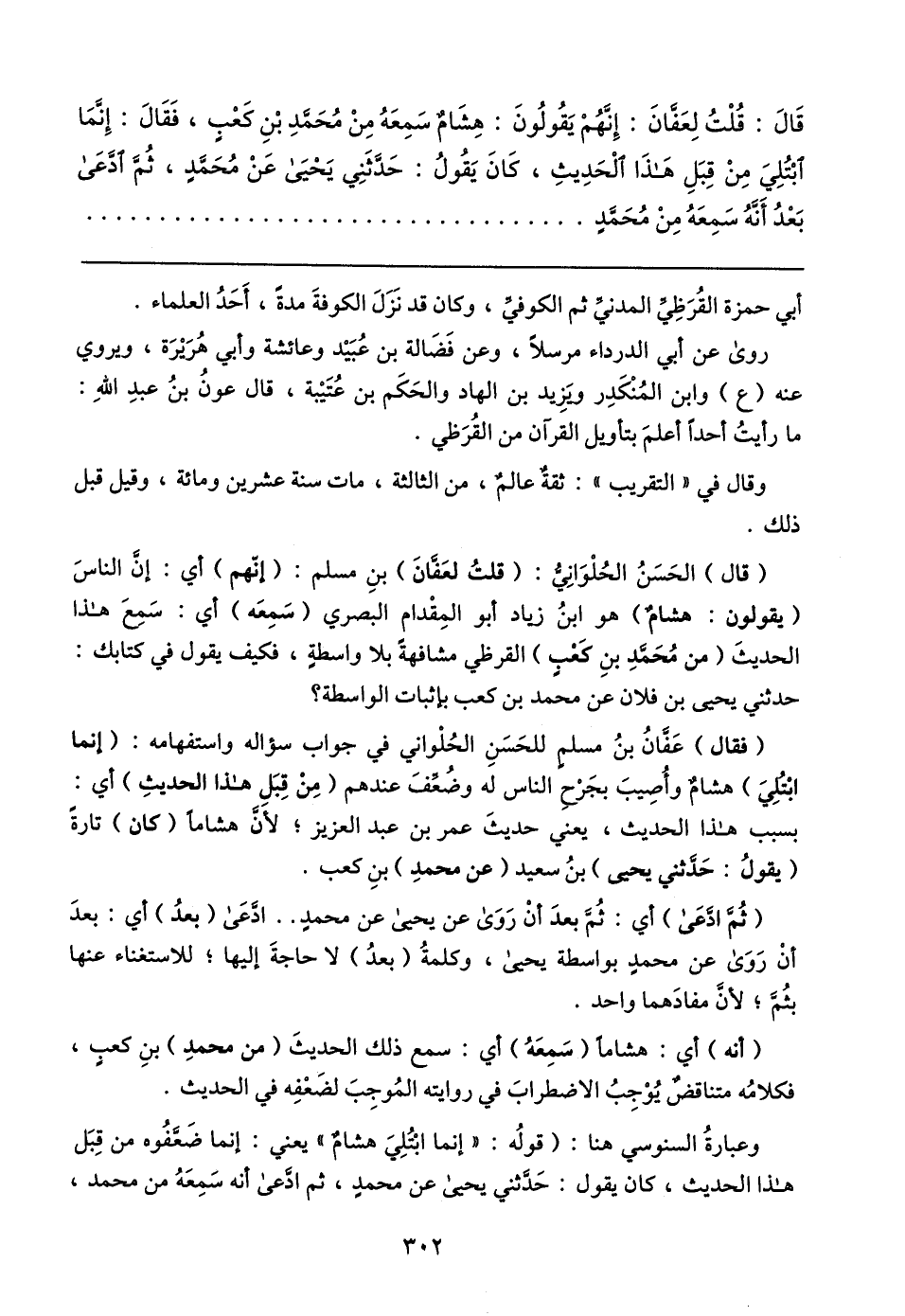 قَال: قُلْتُ لِعَفانَ: إنهُمْ يَقُولُونَ: هِشَامٌ سَمِعَهُ مِنْ محمد بْنِ كَعْبٍ، فَقَال: إِنَّمَا ابْتُلِيَ مِنْ قِبَلِ هَذَا الْحَدِيثِ، كَانَ يَقُولُ: حَدثَنِي يَحْيَى عَنْ مُحمدٍ، ثُمَّ ادَّعَى بَعْدُ أَنَّهُ سَمِعَهُ مِنْ مُحَمَّدٍ