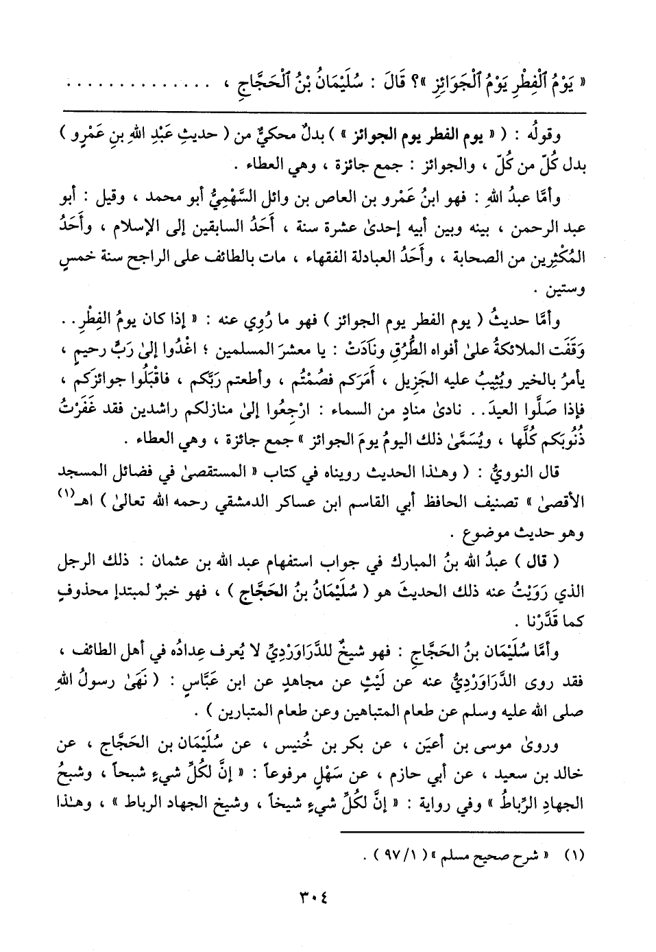 "يَوْمُ الْفِطْرِ يَوْمُ الْجَوَائِزِ"؟ قَال: سُلَيمَانُ بْنُ الْحَجاجِ،