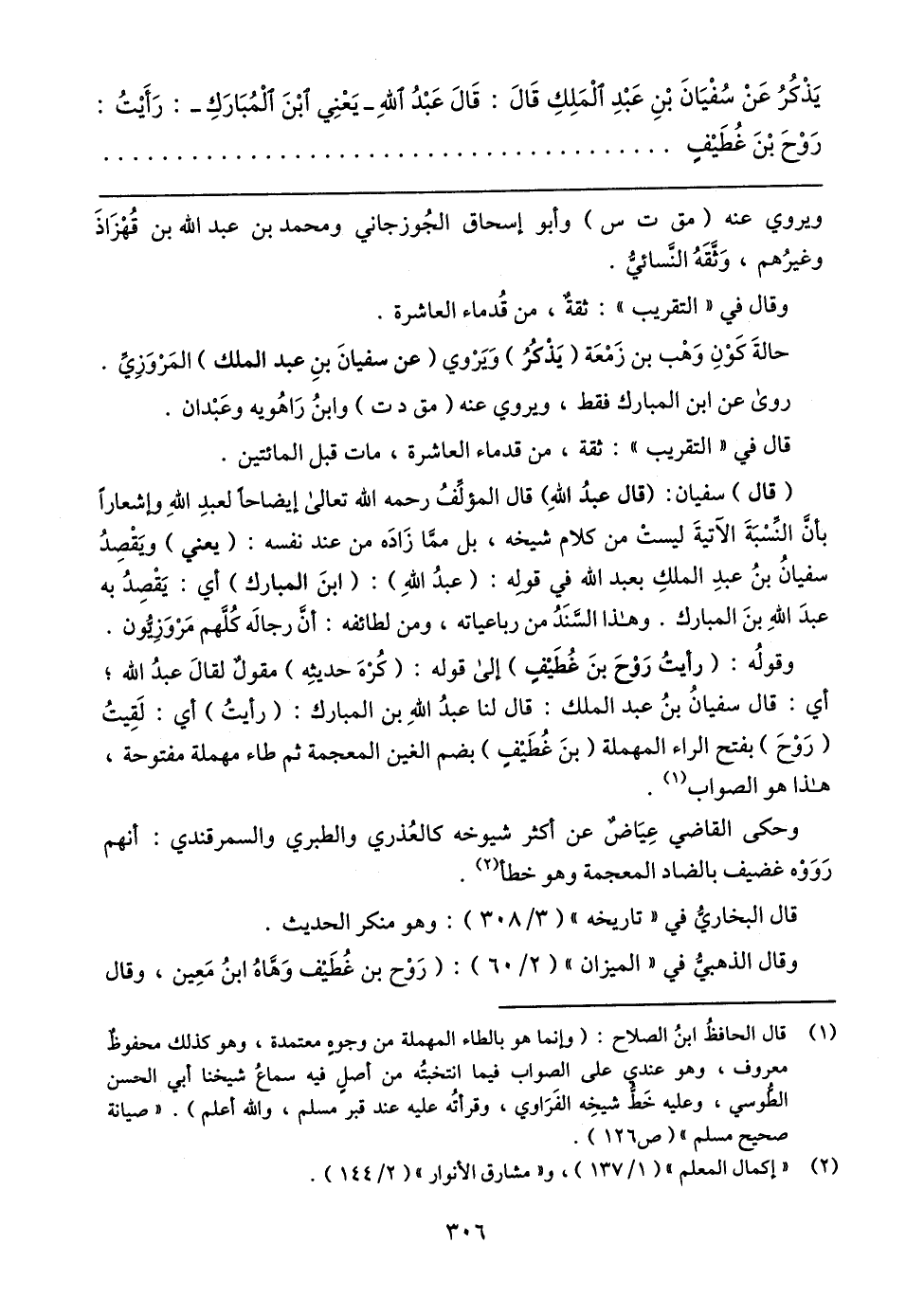 يَذْكُرُ عَنْ سُفْيَانَ بْنِ عَبْدِ الْمَلِكِ قَال: قَال عَبْدُ الله -يَعْنِي ابْنَ الْمُبَارَكِ-: رَأَيتُ: رَوْحَ بْنَ غُطَيفٍ