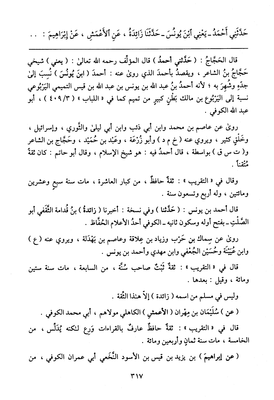 حَدَّثَنِي أَحْمَدُ -يَعْنِي ابْنَ يُونس- حَدَّثَنَا زَائِدَةُ، عَنِ الأَعْمَشِ، عَنْ إِبْرَاهِيمَ: