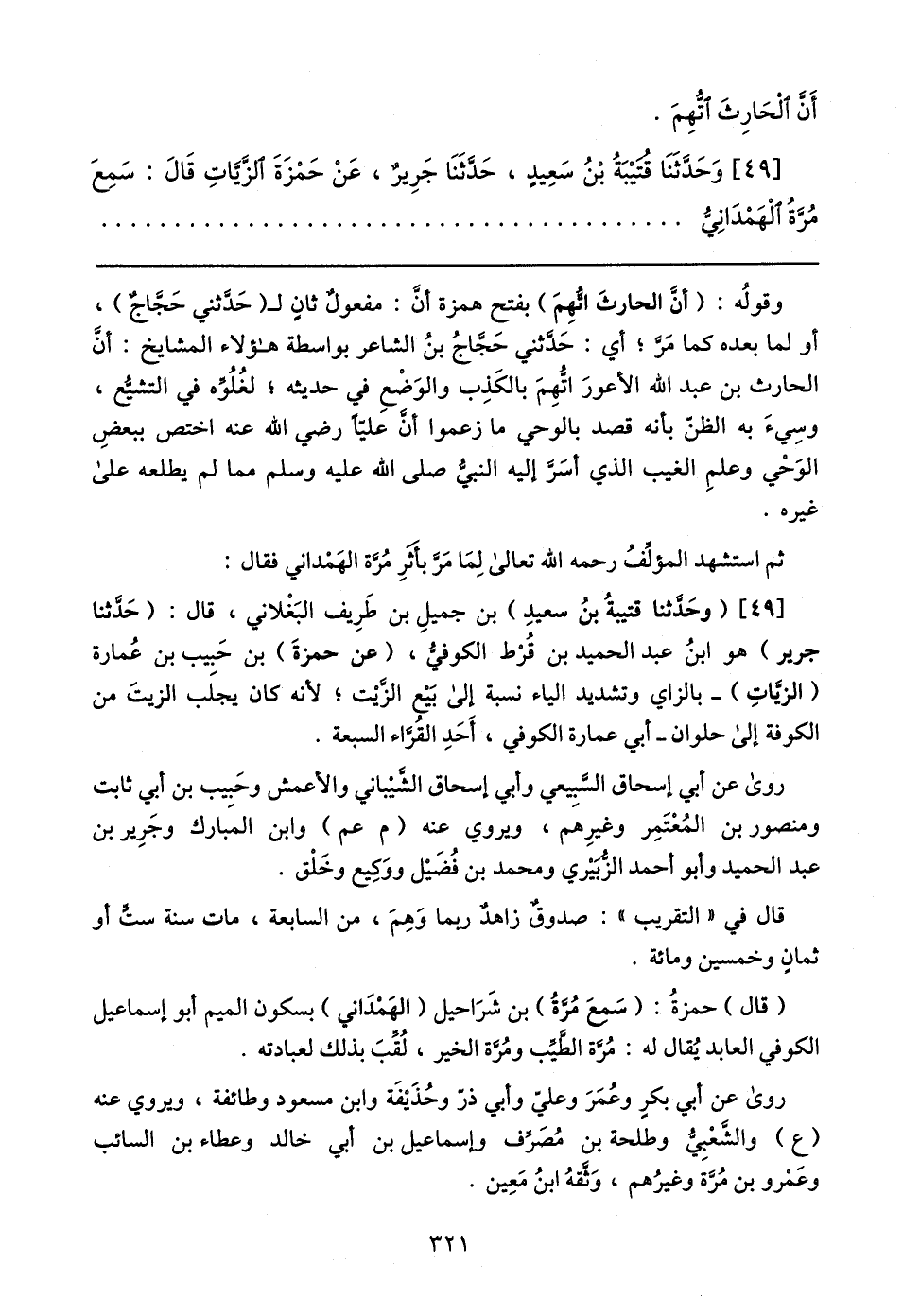 [٤٩] وَحَدَّثَنَا قتيبَةُ بْنُ سَعِيدٍ، حَدثَنَا جَرِيرٌ، عَنْ حَمْزَةَ الزيَّاتِ قَال: سَمِعَ مُرةُ الْهَمْدَانِيُّ