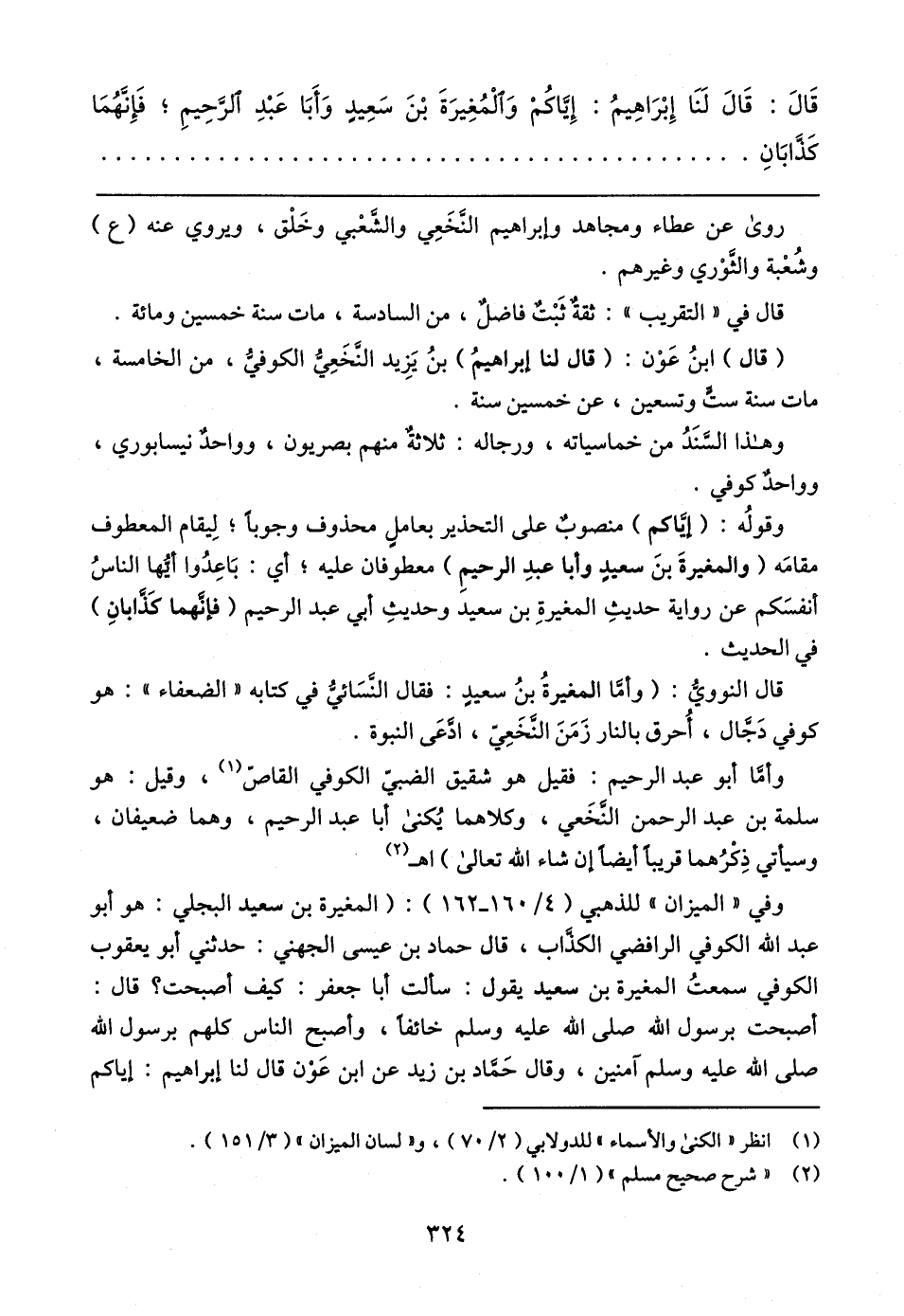 وقولُه: (إيّاكم) منصوبٌ على التحذير بعاملٍ محذوف وجوبًا؛ لِيقام المعطوف مقامَه (والمغيرةَ بنَ سعيدٍ وأبا عبد الرحيمِ) معطوفان عليه؛ أي: بَاعِدُوا أيُها الناسُ أنفسَكم عن رواية حديثِ المغيرةِ بن سعيد وحديثِ أبي عبد الرحيم (فإنَّهما كَذابانِ) في الحديث.