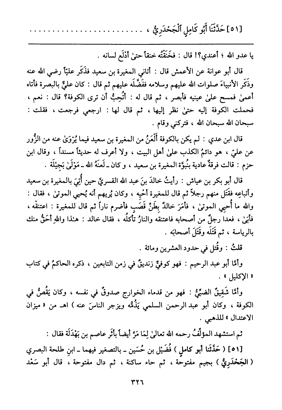 [٥١] (حَدَّثَنا أبو كاملٍ) فُضَيل بن حُسَين -بالتصغير فيهما- ابنِ طلحة البصري (الجَحْدَرِي) بجيم مفتوحة، ثم حاء ساكنة، ثم قال مفتوحة، قال أبو سَعْد