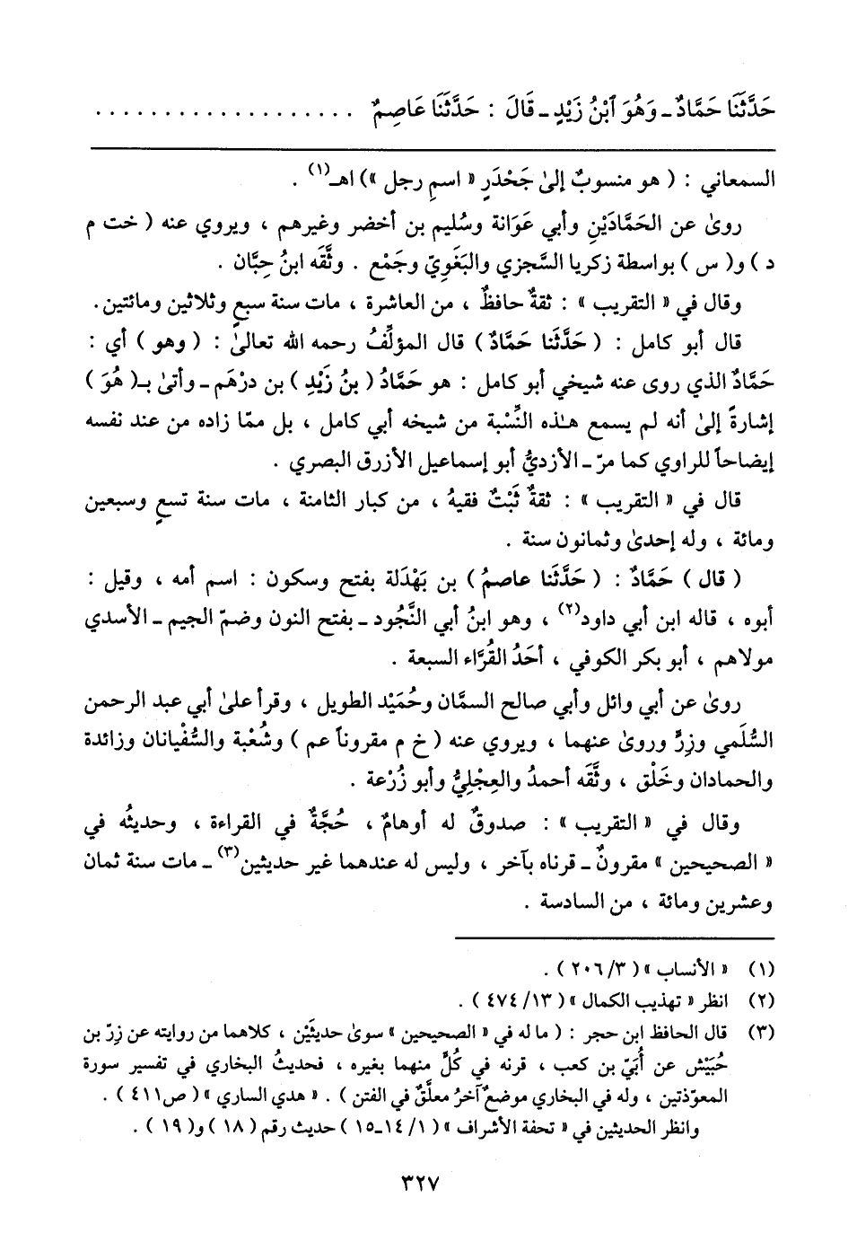 حَدَّثنا حَمَّادٌ -وَهُوَ ابْنُ زَيدٍ- قَال: حَدّثَنَا عَاصِمٌ