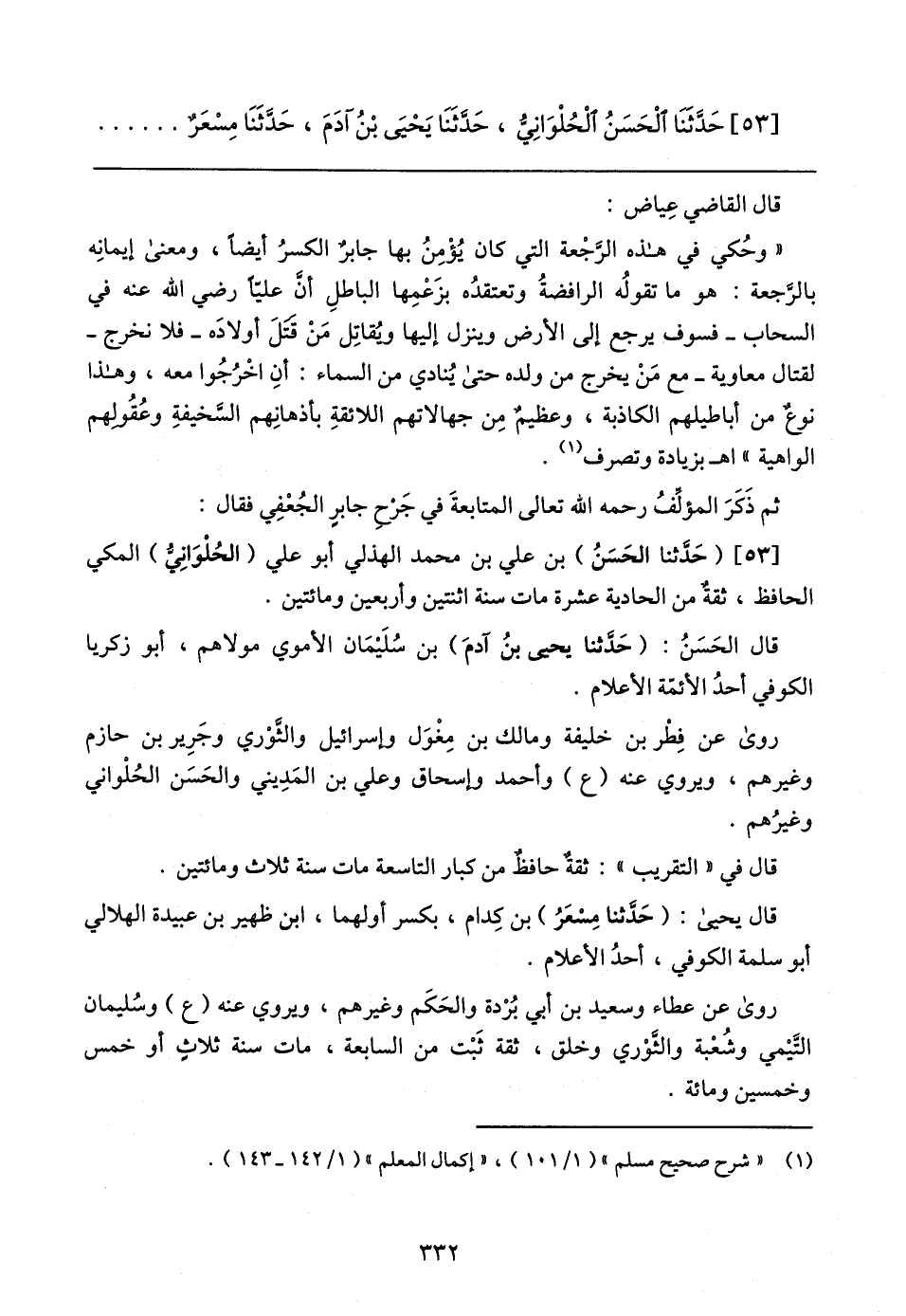 [٥٣] حَدَّثَنَا الْحَسَنُ الْحُلْوَانِيُّ، حَدَّثَنَا يَحْيَى بْنُ آدَمَ، حَدَّثَنَا مِسْعَرٌ
