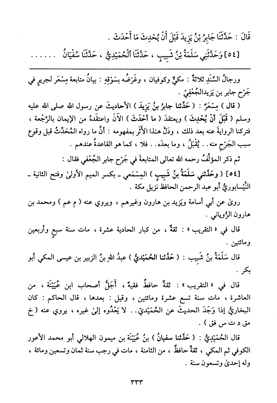 [٥٤] وَحَدَّثَنِي سَلَمَةُ بْنُ شَبِيبِ، حَدّثَنَا الْحُمَيدِيُّ، حَدَّثَنَا سُفْيَانُ