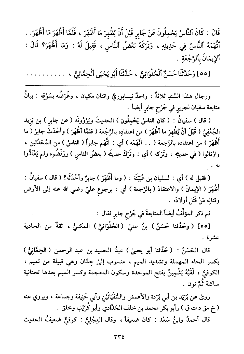 [٥٥] وَحَدَّثَنَا حَسَنٌ الْحُلْوَانِيُّ، حَدَّثَنَا أَبُو يَحْيَى الْحِمَّانِيُّ،