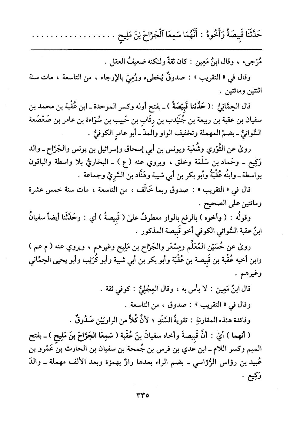 حَدّثَنَا قَبِيصَةُ وَأَخُوهُ: أنَّهمَا سَمِعَا الْجَرَّاحَ بْنَ مَلِيحٍ