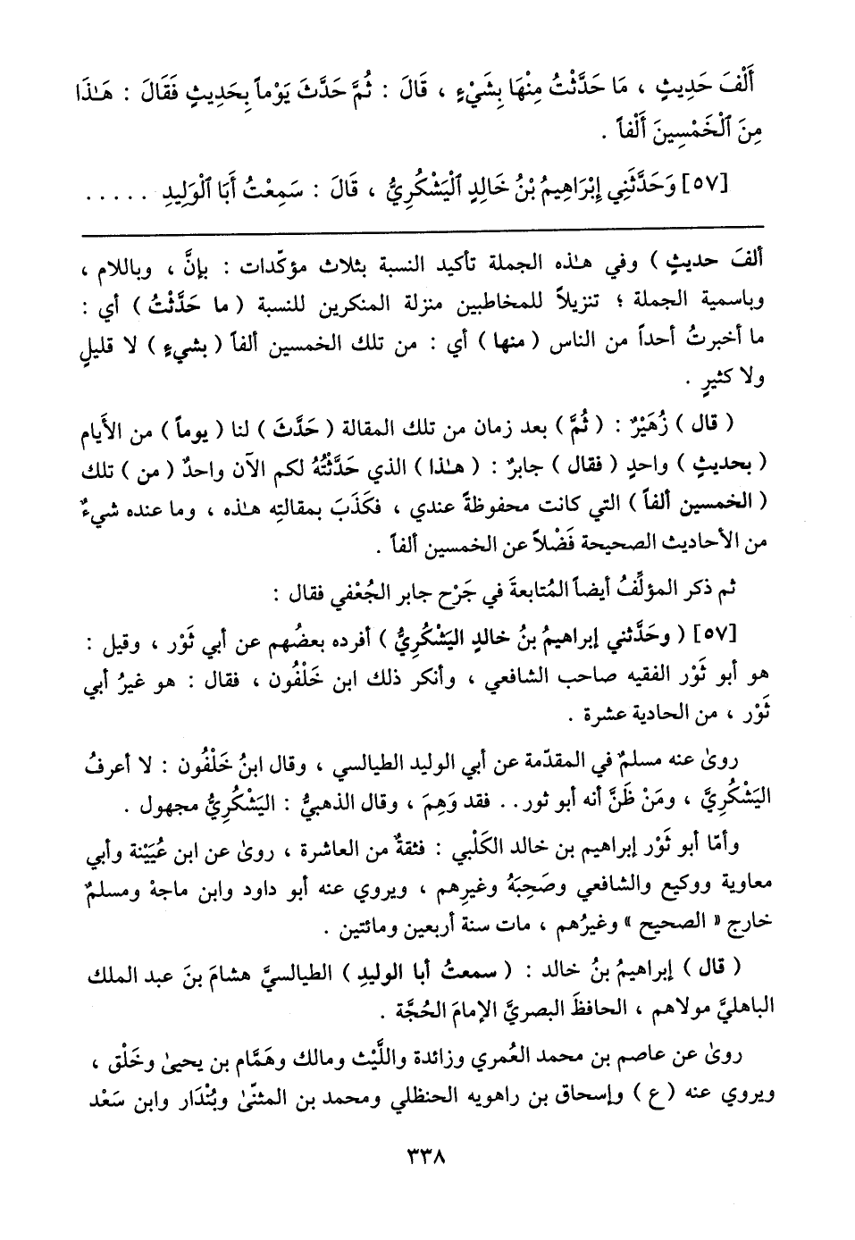 [٥٧] وَحَدَّثَنِي إِبْرَاهِيمُ بْنُ خَالِدٍ الْيَشْكُرِيُّ، قَال: سَمِعْتُ أَبَا الْوَليدِ