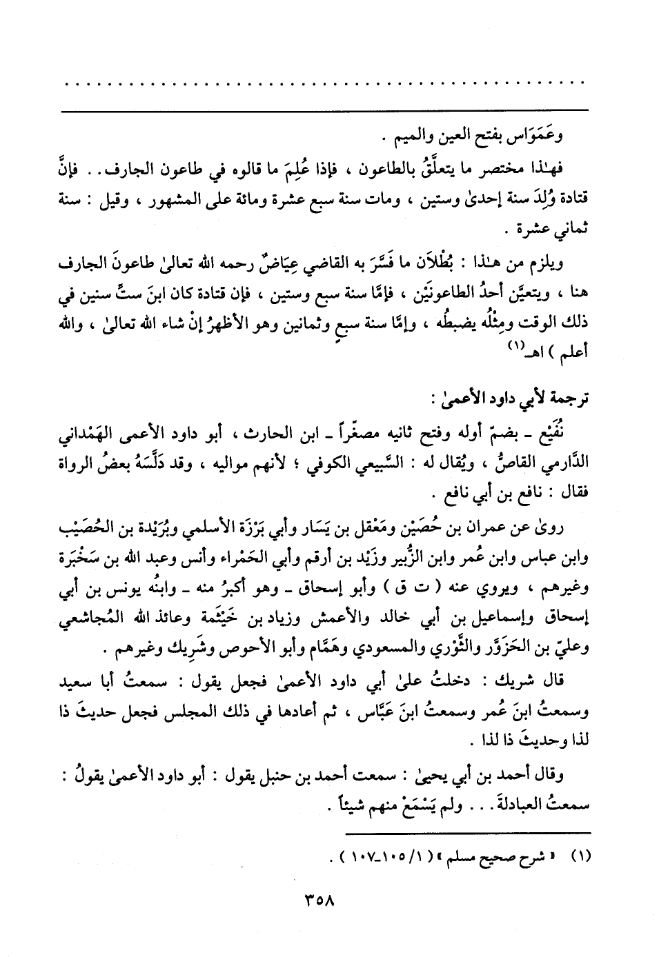 وقال أَحْمد بن أبي يحيى: سمعت أَحْمد بن حنبل يقول: أبو داود الأعمى يقولُ: سمعتُ العبادلةَ ... ولم يَسْمَعْ منهم شيئًا.