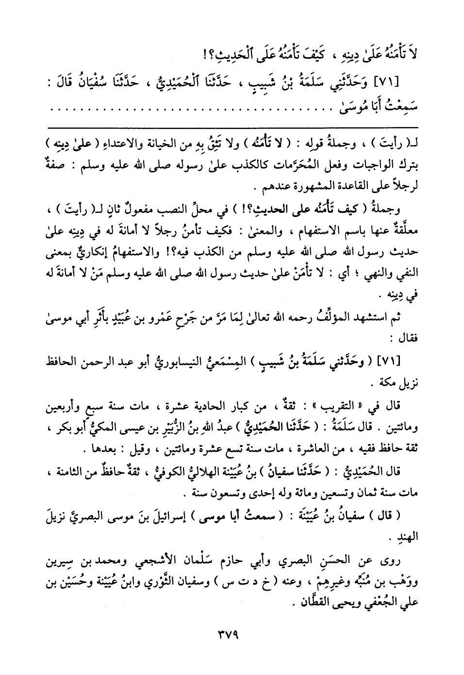 [٧١] وَحَدَّثَنِي سَلَمَةُ بْنُ شَبِيبٍ، حَدَّثَنَا الْحُمَيدِيُّ، حَدَّثَنَا سُفْيَانُ قَال: سَمِعْتُ أَبَا مُوسَى