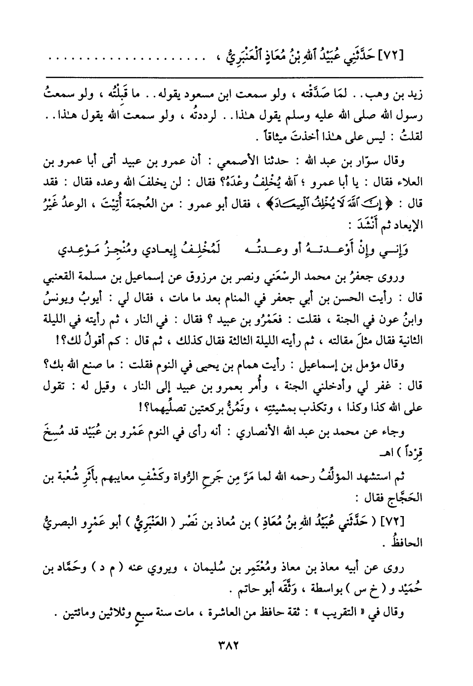 [٧٢] حَدَّثَنِي عُبَيدُ الله بْنُ مُعَاذٍ الْعَنْبَرِيُّ،