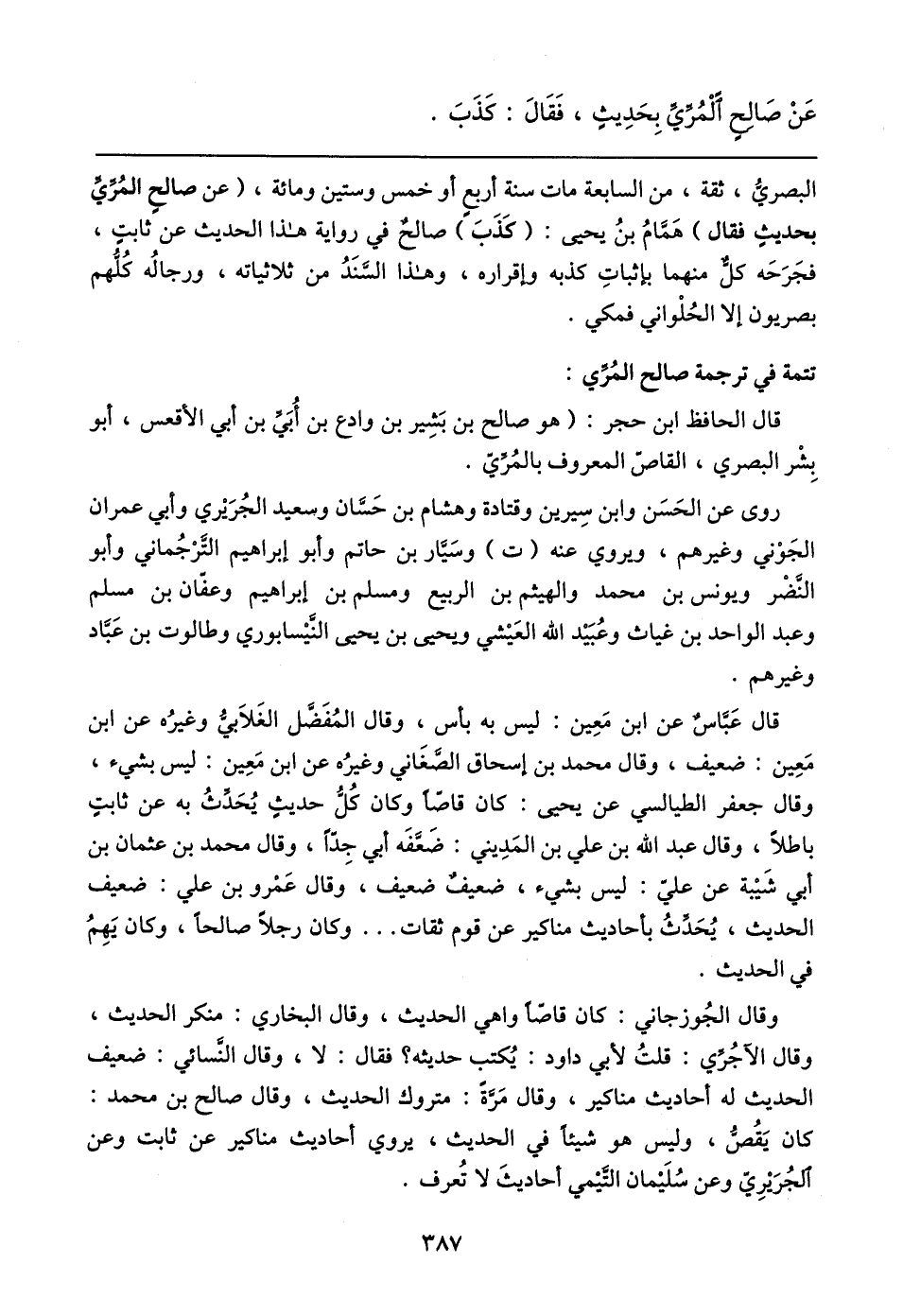 عَنْ صَالِحٍ الْمُرِّيِّ بِحَدِيثٍ، فَقَال: كَذَبَ