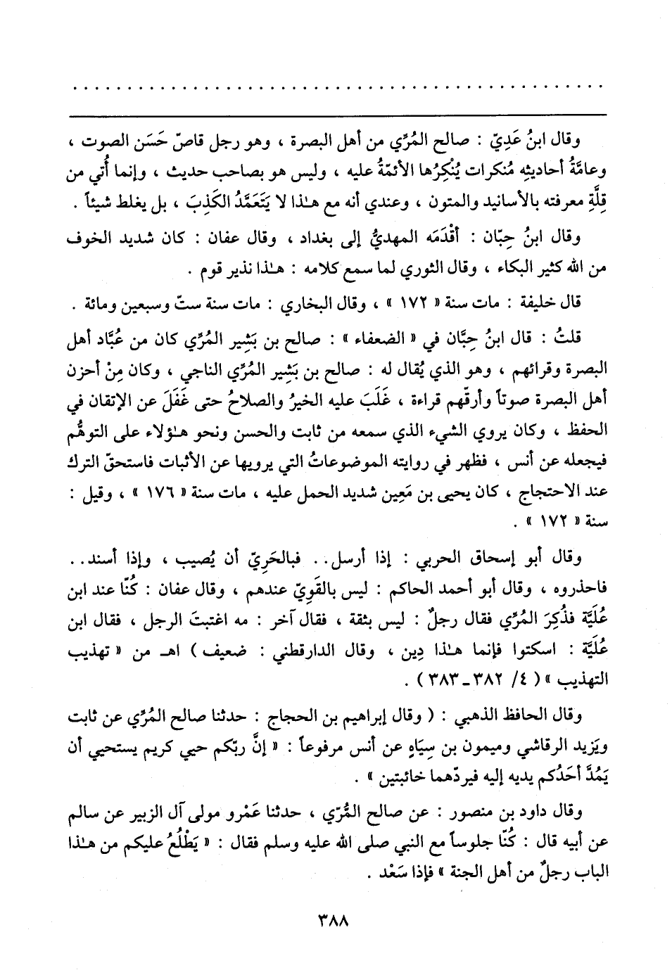 وقال الحافظ الذهبي: (وقال إبراهيم بن الحجاج: حَدَّثَنَا صالح المُرِّي عن ثابت ويَزيد الرَّقاشيّ وميمون بن سِيَاهٍ عن أنس مرفوعًا: "إنَّ ربّكم حيي كريم يستحيي أن يَمُدَّ أَحَدُكم يديه إليه فيردّهما خائبتين".