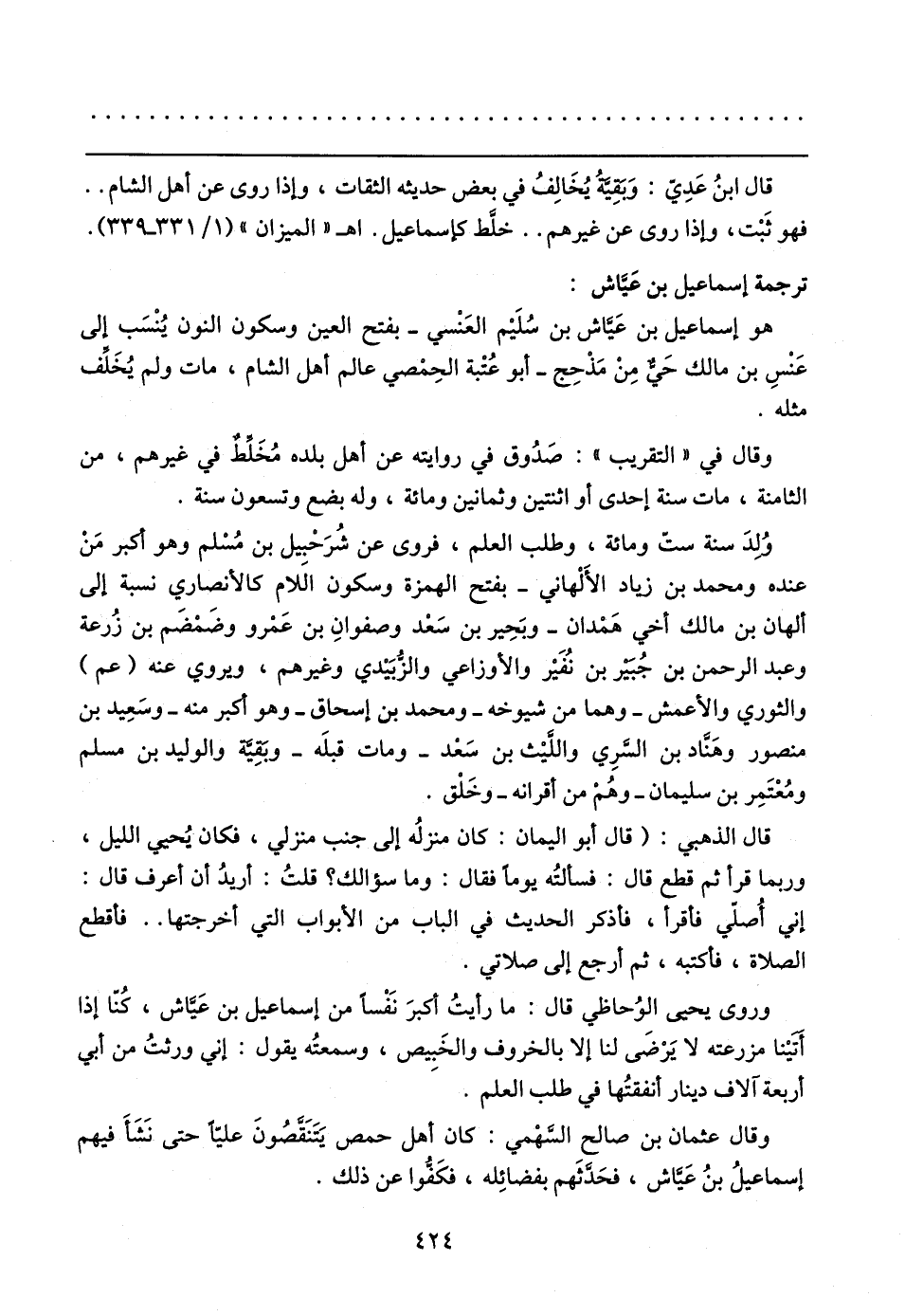 وقال عثمان بن صالح السَّهْمي: كان أهل حمص يَتَنَقَّصُونَ عليّا حتى نشأ فيهم إسماعيلُ بن عَياش، فحَدَّثَهم بفضائِله، فكَفُّوا عن ذلك.