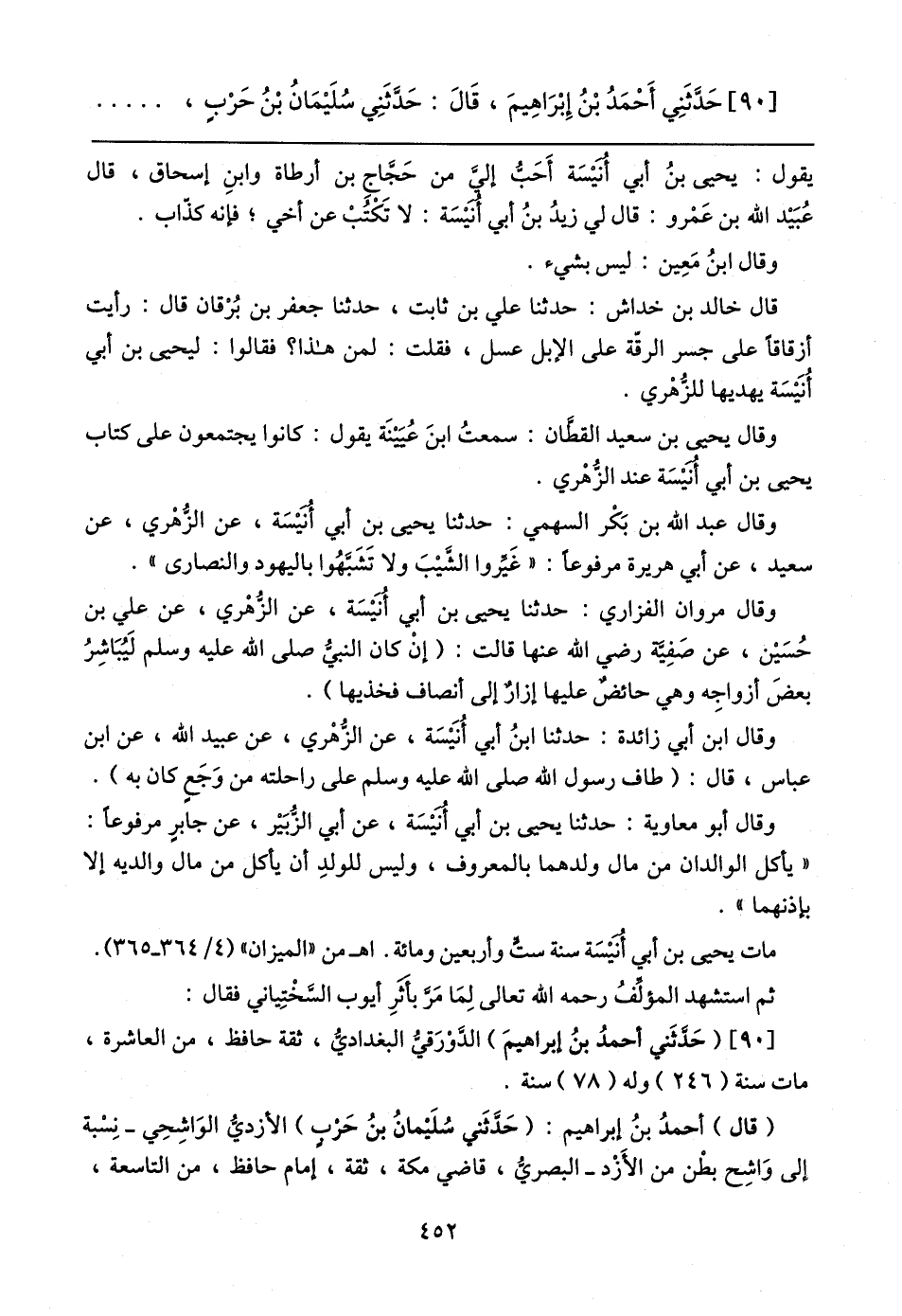 [٩٠] حَدَّثَنِي أَحْمَدُ بْنُ إِبْرَاهِيمَ، قَال: حَدَّثَنِي سُلَيمَانُ بْنُ حَرْبِ،