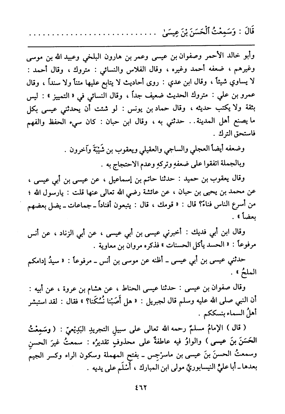 قَال: وَسَمِعْتُ الْحَسَنَ بْنَ عِيسَى