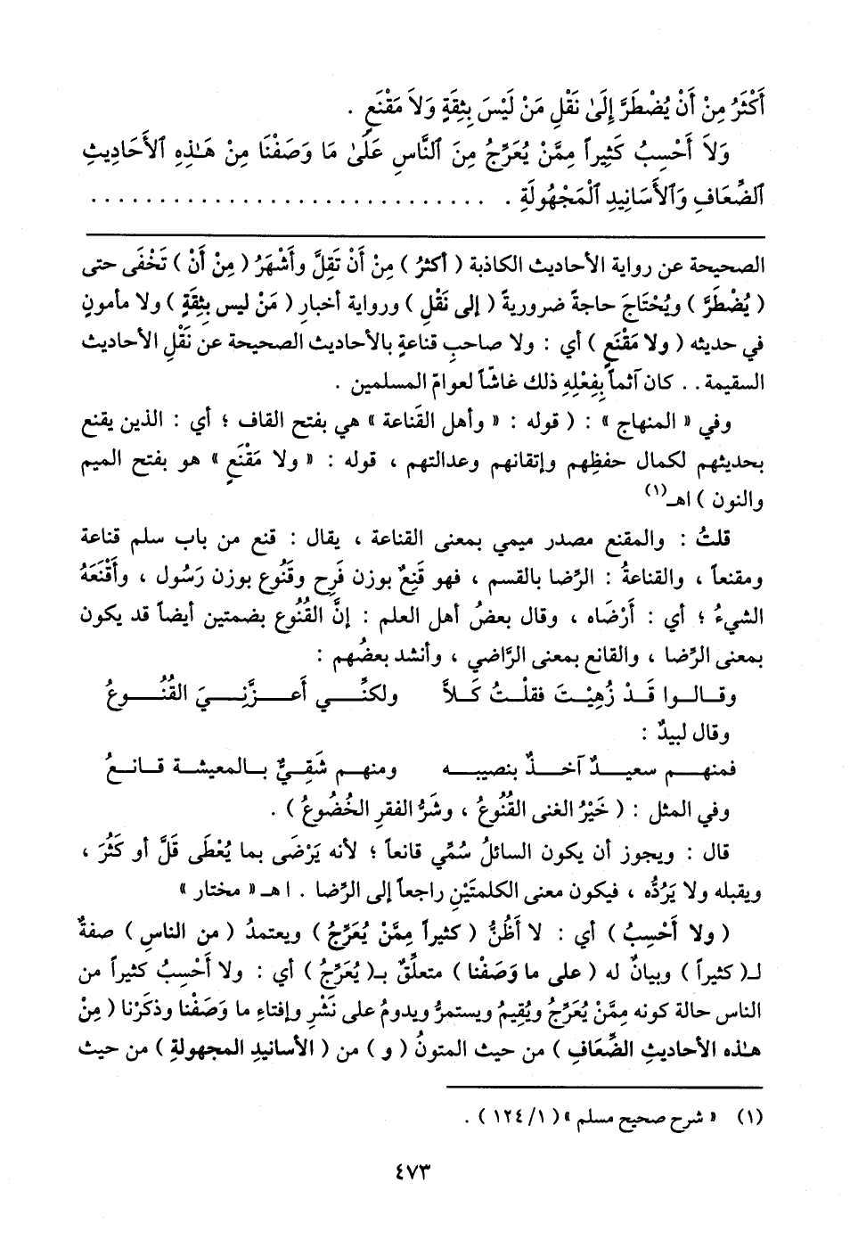 وفي "المنهاج": (قوله: "وأهل القَناعة" هي بفتح القاف؛ أي: الذين يقنع بحديثهم لكمال حفظِهم وإتقانهم وعدالتهم، قوله: "ولا مَقْنَعٍ" هو بفتح الميم والنون) اهـ (١).