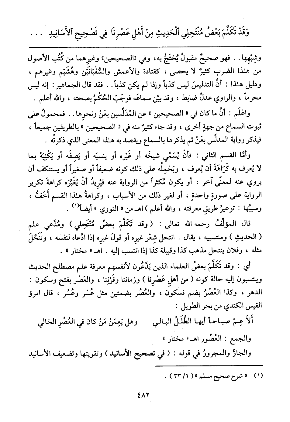وَقَدْ تَكَلَّمَ بَعْضُ مُنْتَحِلِي الْحَدِيثِ مِنْ أَهْلِ عَصْرِنَا في تَصْحِيحِ الأَسَانِيدِ
