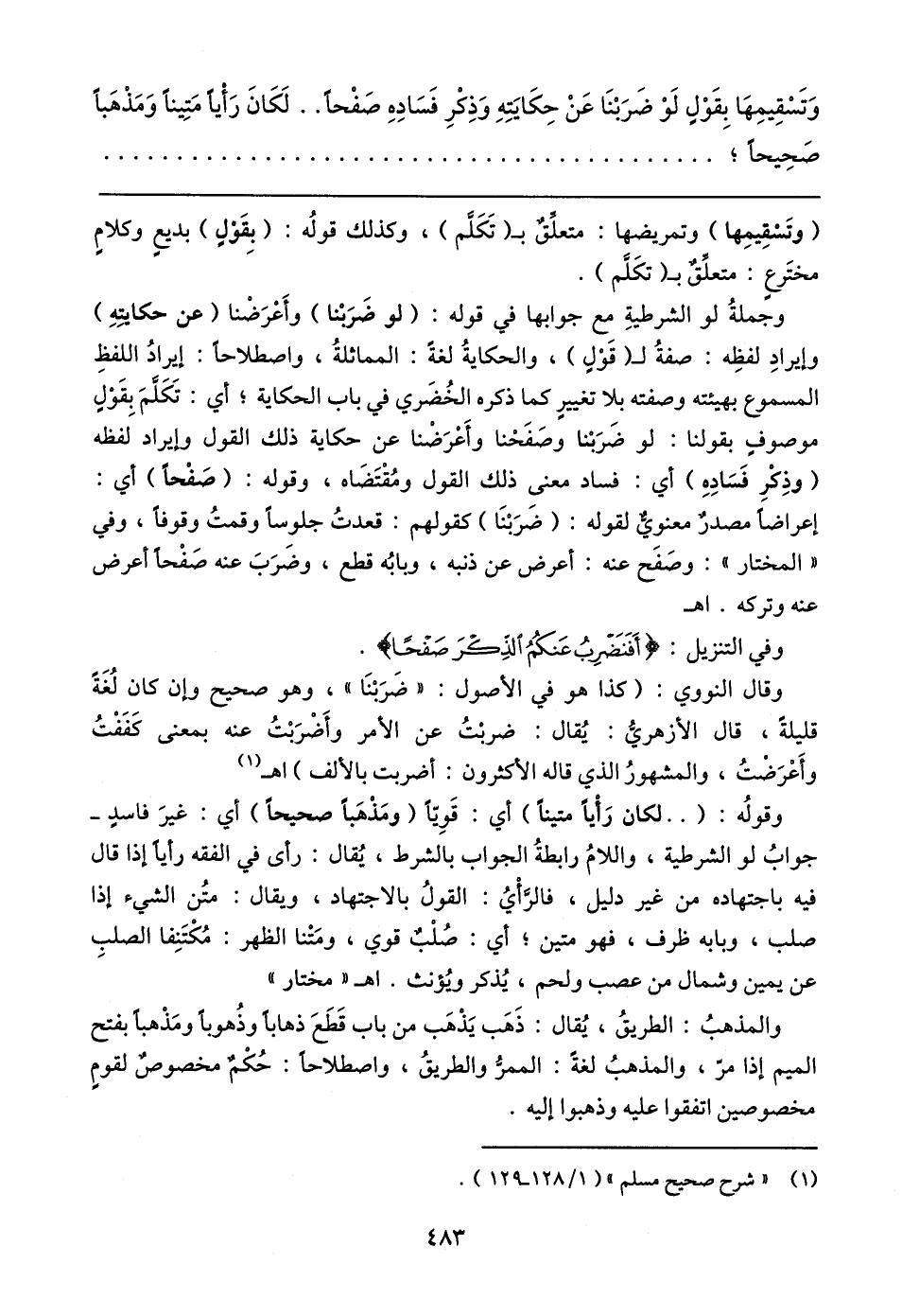 وَتَسْقِيمِهَا بِقَوْلٍ لَوْ ضَرَبْنَا عَنْ حِكَايَتِهِ وَذِكْرِ فَسَادِهِ صَفْحًا .. لَكَانَ رَأْيًا مَتِينًا وَمَذْهَبًا صَحِيحًا؛