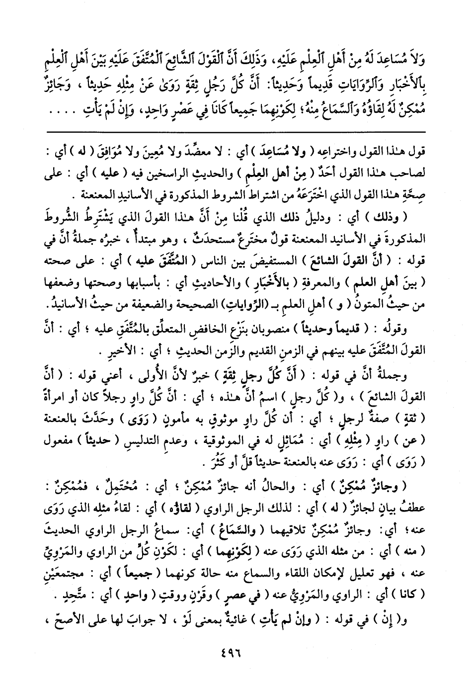 وَلَا مُسَاعِدَ لَهُ مِنْ أَهْلِ الْعِلْمِ عَلَيهِ، وَذَلِكَ أَن الْقَوْلَ الشائِعَ الْمُتَّفَقَ عَلَيهِ بَينَ أَهْلِ الْعِلْمِ بِالأَخْبَارِ وَالرِّوايَاتِ قَدِيمًا وَحَدِيثًا: أَنَّ كُلَّ رَجُلٍ ثِقَةٍ رَوَى عَنْ مِثْلِهِ حَدِيثًا، وَجَائِزٌ مُمْكِنٌ لَهُ لِقَاؤُهُ وَالسَّمَاعُ مِنْهُ؛ لِكَوْنهِمَا جَمِيعًا كَانَا في عَصْرٍ وَاحِدٍ، وَإِنْ لَمْ يَأتِ