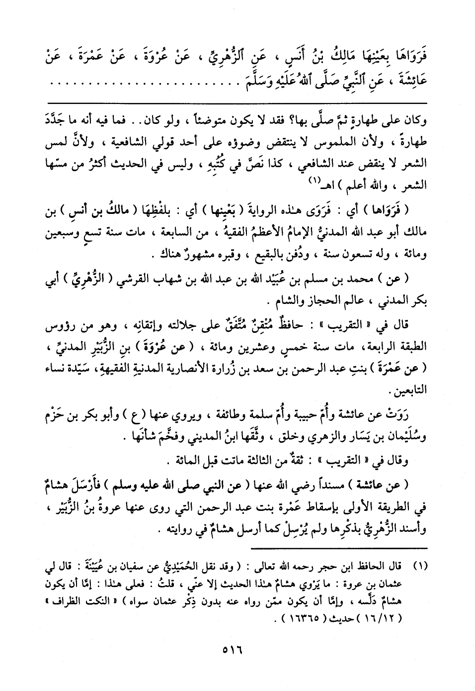 قال في "التقريب": حافظٌ مُتْقِنٌ مُتَّفَقٌ على جلالته وإتقانِه، وهو من رؤوس الطبقة الرابعة، مات سنة خمسٍ وعشرين ومائة، (عن عُرْوَةَ) بنِ الزُّبَيرِ المدنيِّ، (عن عَمْرَةَ) بنتِ عبد الرحمن بن سعد بن زُرارة الأنصارية المدنيةِ الفقيهةِ، سَيّدة نساء التابعين.