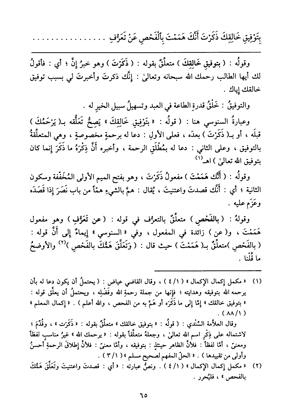 (٢) "مكمل إِكمال الإِكمال" (١/ ٤). ونصُّ عبارته: "أي: قصدتَ واعتنيتَ وتَعَلَّقَ هَمُّكَ بالفحص"، فليُحرر.