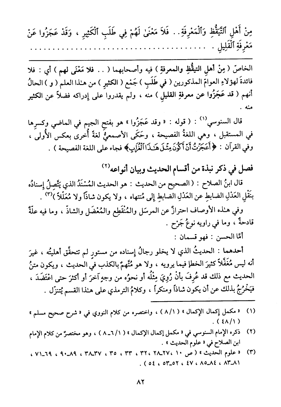(٢) ذكره الإِمام السنوسي في "مكمل إكمال الإكمال" (١/ ٦ - ٨)، وهو مختصرٌ من كلام الإِمام ابن الصلاح في "علوم الحديث".