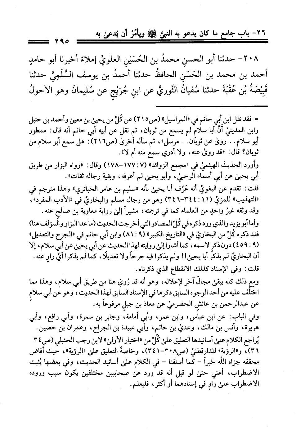 208 - حَدَّثَنا أبو الحَسَن محمد بن الحُسَين العلوي إملاء أَخْبَرنَا أبو حامد أحمد بن محمد بن الحَسَن الحافظ حَدَّثَنا أحمد بن يوسف السلمي حَدَّثَنا قبيصة بن عقبة حَدَّثَنا سفيان الثوري عن ابن جريج عن سليمان وهو الأحول عن طاوس عن ابن عباس رضي الله عنهما قال كان رسول الله صَلَّى اللهُ عَلَيْهِ وَسَلَّمَ يدعو من الليل اللَّهُمَّ لَكَ الْحَمْدُ، أَنْتَ رب السَّمَاوَاتِ وَالأَرْضِ، لَكَ الْحَمْدُ، أَنْتَ قيوم السَّمَاوَاتِ وَالأَرْضِ لَكَ الْحَمْدُ أنت نور السماوات والأرض وما فيهن، قولك حق، وَوَعْدُكَ حَقُّ، وَلِقَاؤُكَ حَقٌّ، وَالْجَنَّةُ حَقٌّ، وَالنَّارُ حَقٌّ، وَالسَّاعَةُ حَقٌّ، اللَّهُمَّ لَكَ أَسْلَمْتُ، وَبِكَ آمَنْتُ، وَعَلَيْكَ تَوَكَّلْتُ، وَإِلَيْكَ أَنَبْتُ، وَبِكَ خَاصَمْتُ، وَإِلَيْكَ حَاكَمْتُ، فَاغْفِرْ لِي مَا قَدَّمْتُ، وَأَخَّرْتُ، وَأَسْرَرْتُ وَأَعْلَنْتُ، أَنْتَ إلهي , لاَ إِلَهَ غَيْرُكَ