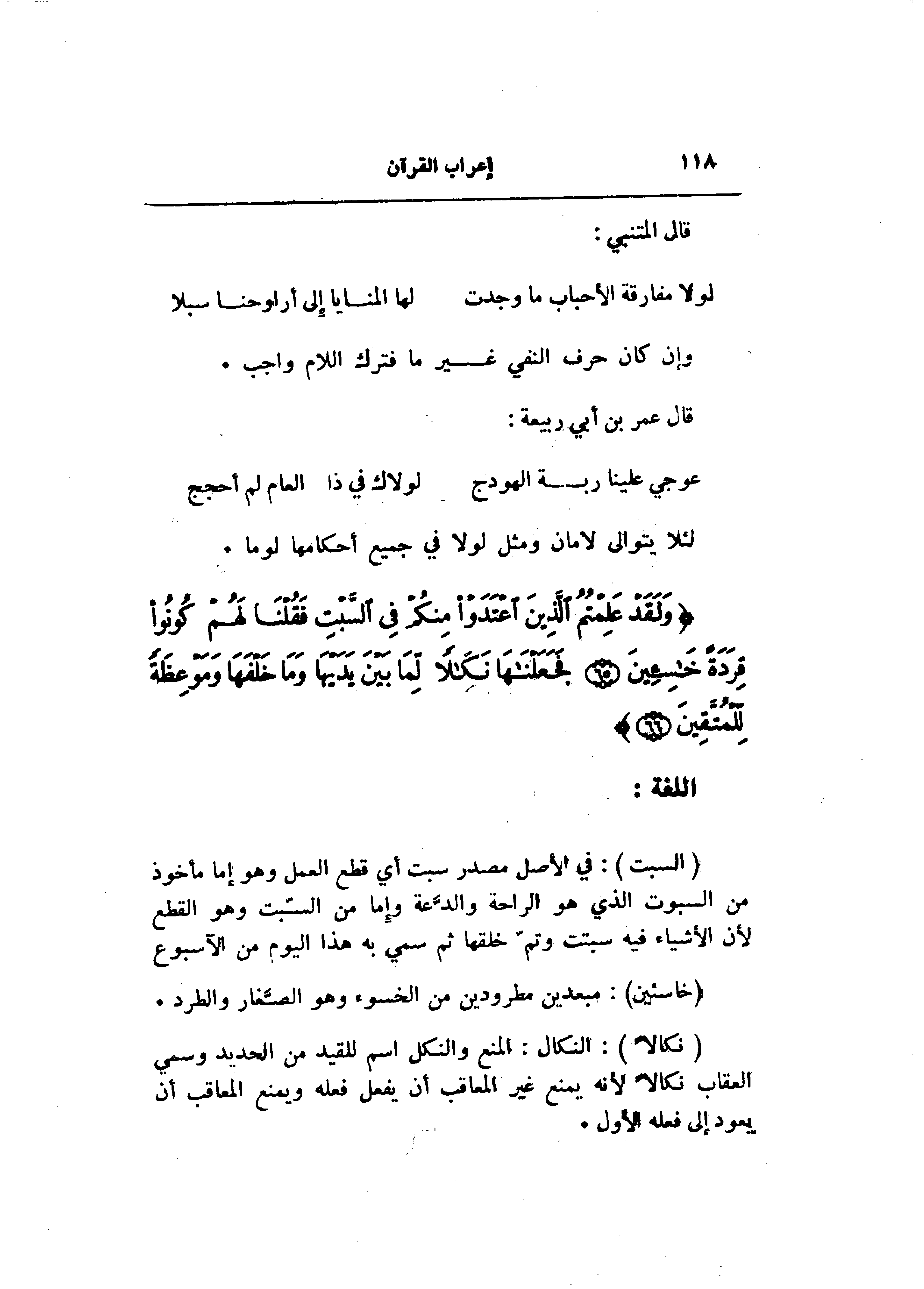 (نَكالًا) : النكال: المنع والنكل اسم للقيد من الحديد وسمي العقاب نكالا لأنه يمنع غير المعاقب أن يفعل فعله ويمنع المعاقب أن يعود إلى فعله الأول.