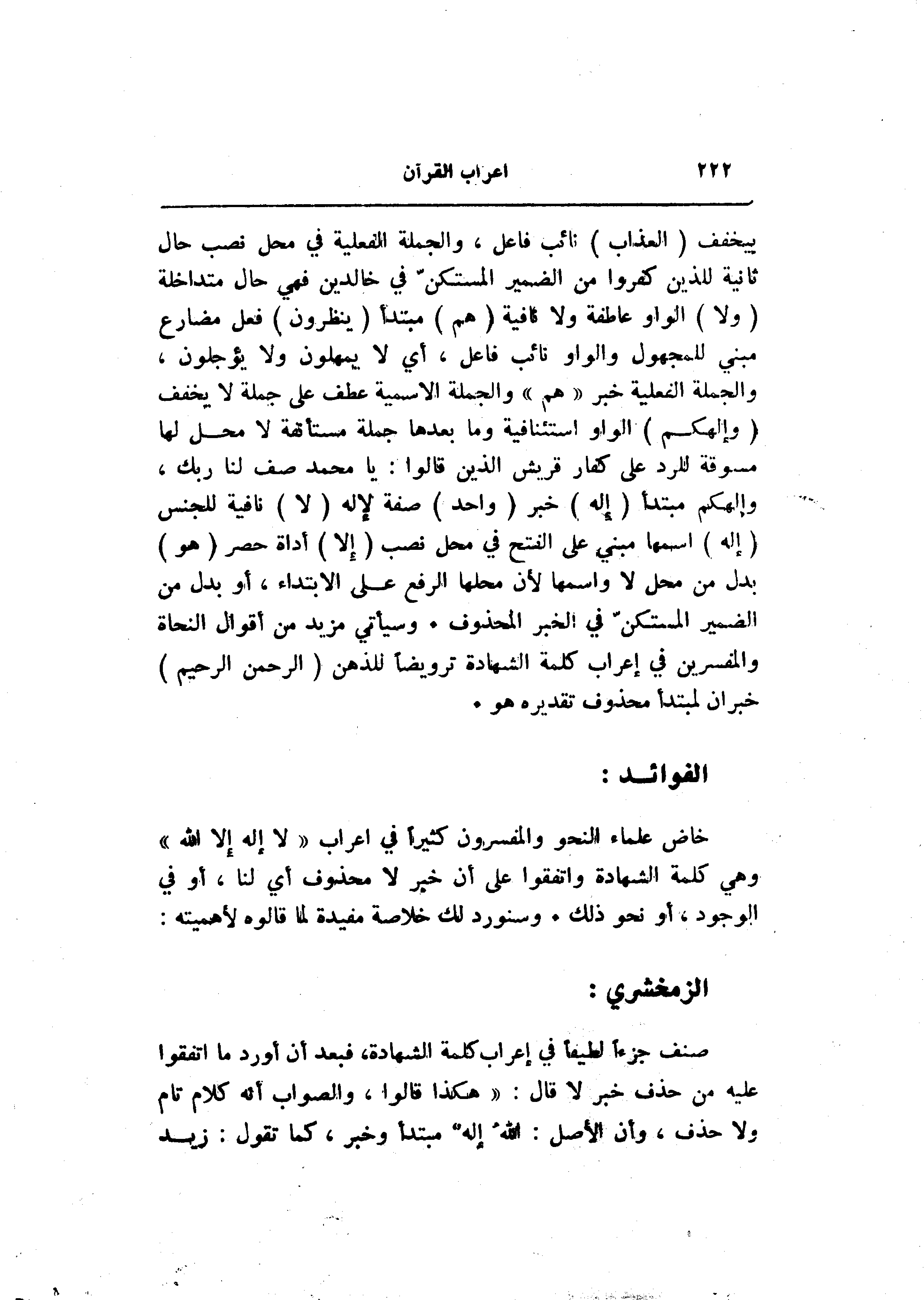 خاض علماء النحو والمفسرون كثيرا في اعراب «لا إله إلا الله» وهي كلمة الشهادة واتفقوا على أن خبر لا محذوف أي لنا، أو في الوجود، أو نحو ذلك. وسنورد لك خلاصة مفيدة لما قالوه لأهميته: