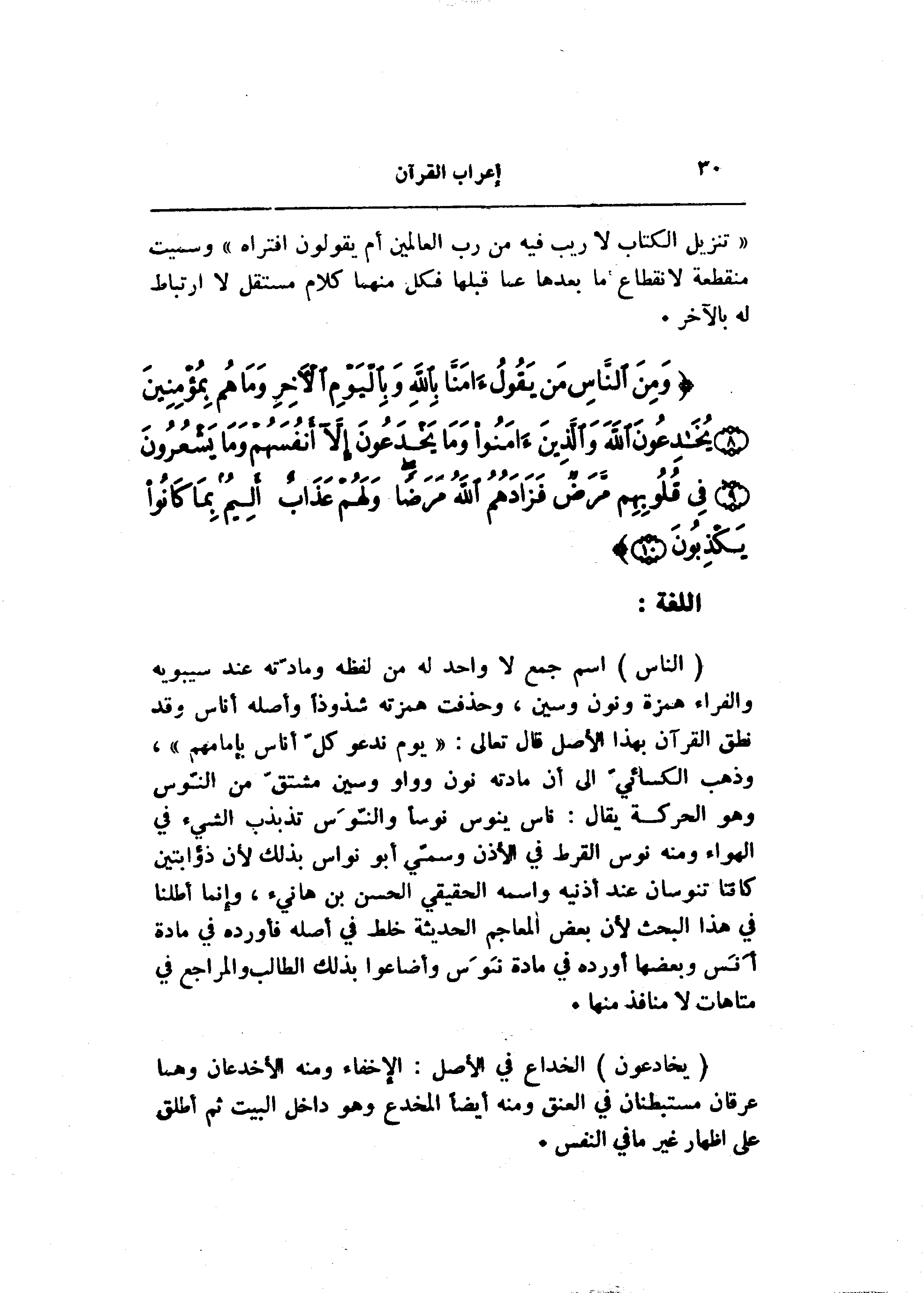 (يُخادِعُونَ) الخداع في الأصل: الإخفاء ومنه الأخدعان وهما عرقان مستبطنان في العنق ومنه أيضا المخدع وهو داخل البيت ثم أطلق على اظهار غير ما في النفس.