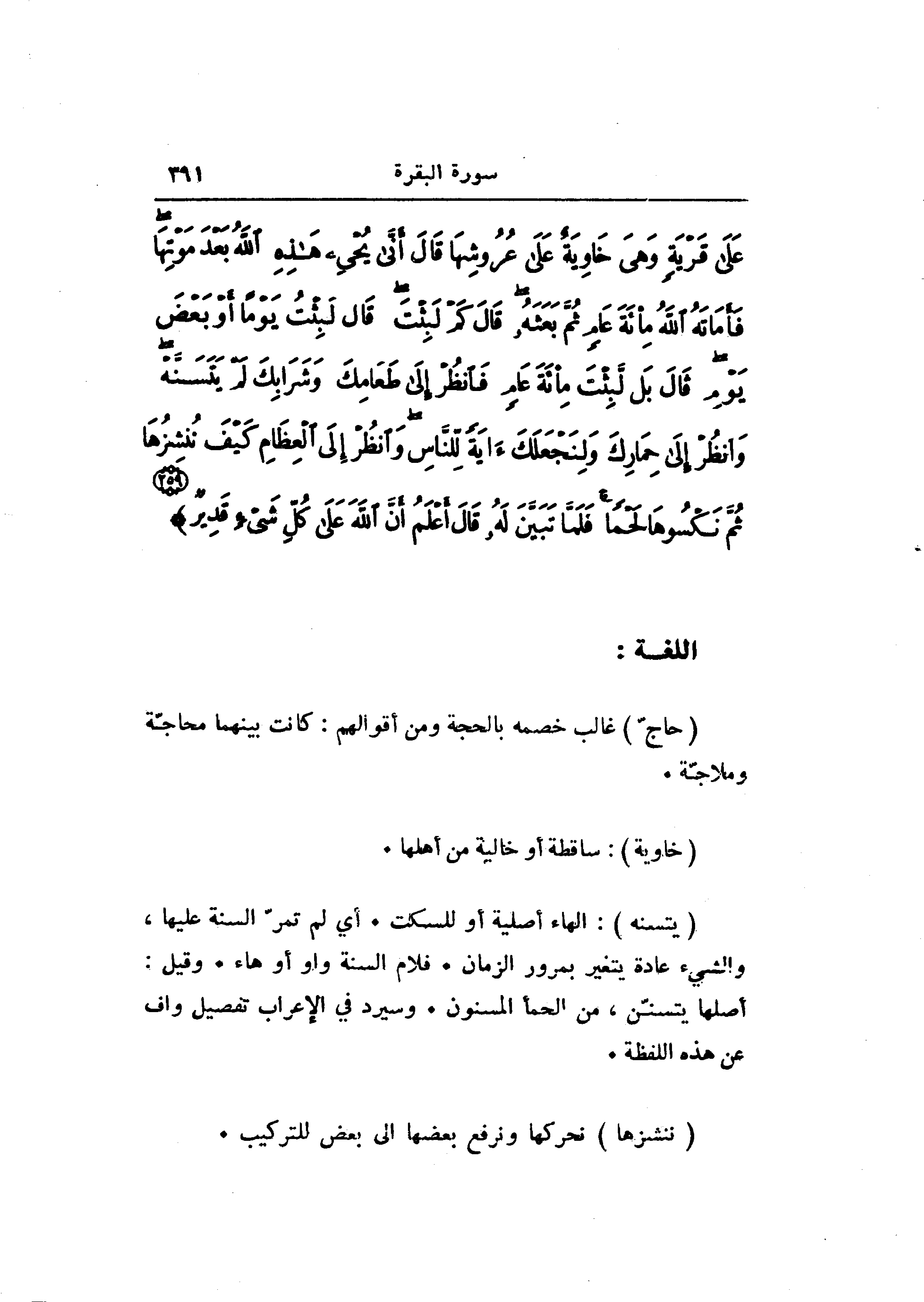(يَتَسَنَّهْ) : الهاء أصلية أو للسكت. أي لم تمرّ السنة عليها، والشيء عادة يتغير بمرور الزمان. فلام السنة واو أو هاء. وقيل: