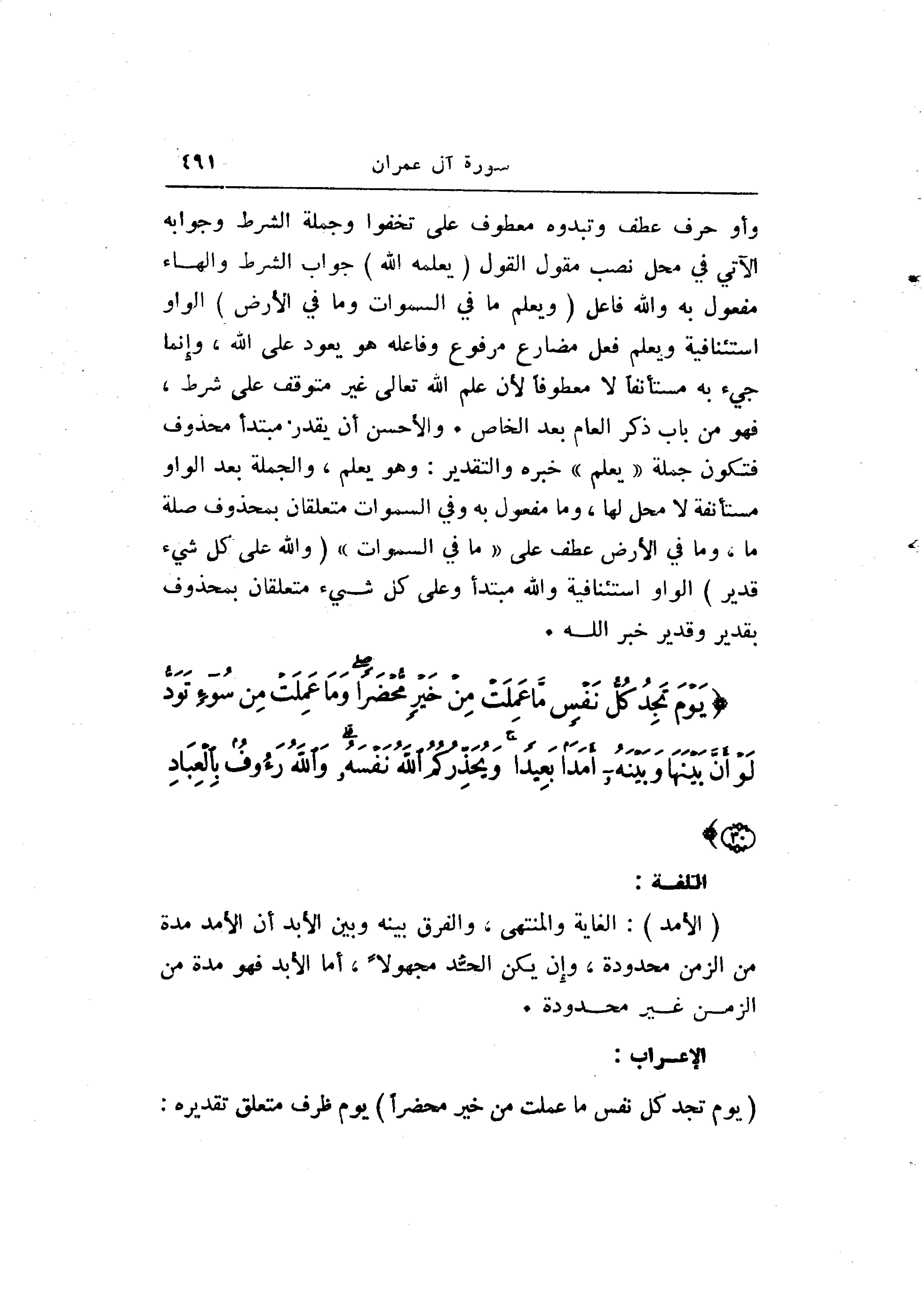 وأو حرف عطف وتبدوه معطوف على تخفوا وجملة الشرط وجوابه الآتي في محل نصب مقول القول (يَعْلَمْهُ اللَّهُ) جواب الشرط والهاء مفعول به والله فاعل (وَيَعْلَمُ ما فِي السَّماواتِ وَما فِي الْأَرْضِ) الواو استئنافية ويعلم فعل مضارع مرفوع وفاعله هو يعود على الله، وإنما جيء به مستأنفا لا معطوفا لأن علم الله تعالى غير متوقف على شرط، فهو من باب ذكر العام بعد الخاص. والأحسن أن يقدر مبتدأ محذوف فتكون جملة «يعلم» خبره والتقدير: وهو يعلم، والجملة بعد الواو مستأنفة لا محل لها، وما مفعول به وفي السموات متعلقان بمحذوف صلة ما، وما في الأرض عطف على «ما في السموات» (وَاللَّهُ عَلى كُلِّ شَيْءٍ قَدِيرٌ) الواو استئنافية والله مبتدأ وعلى كل شيء متعلقان بمحذوف بقدير وقدير خبر الله.