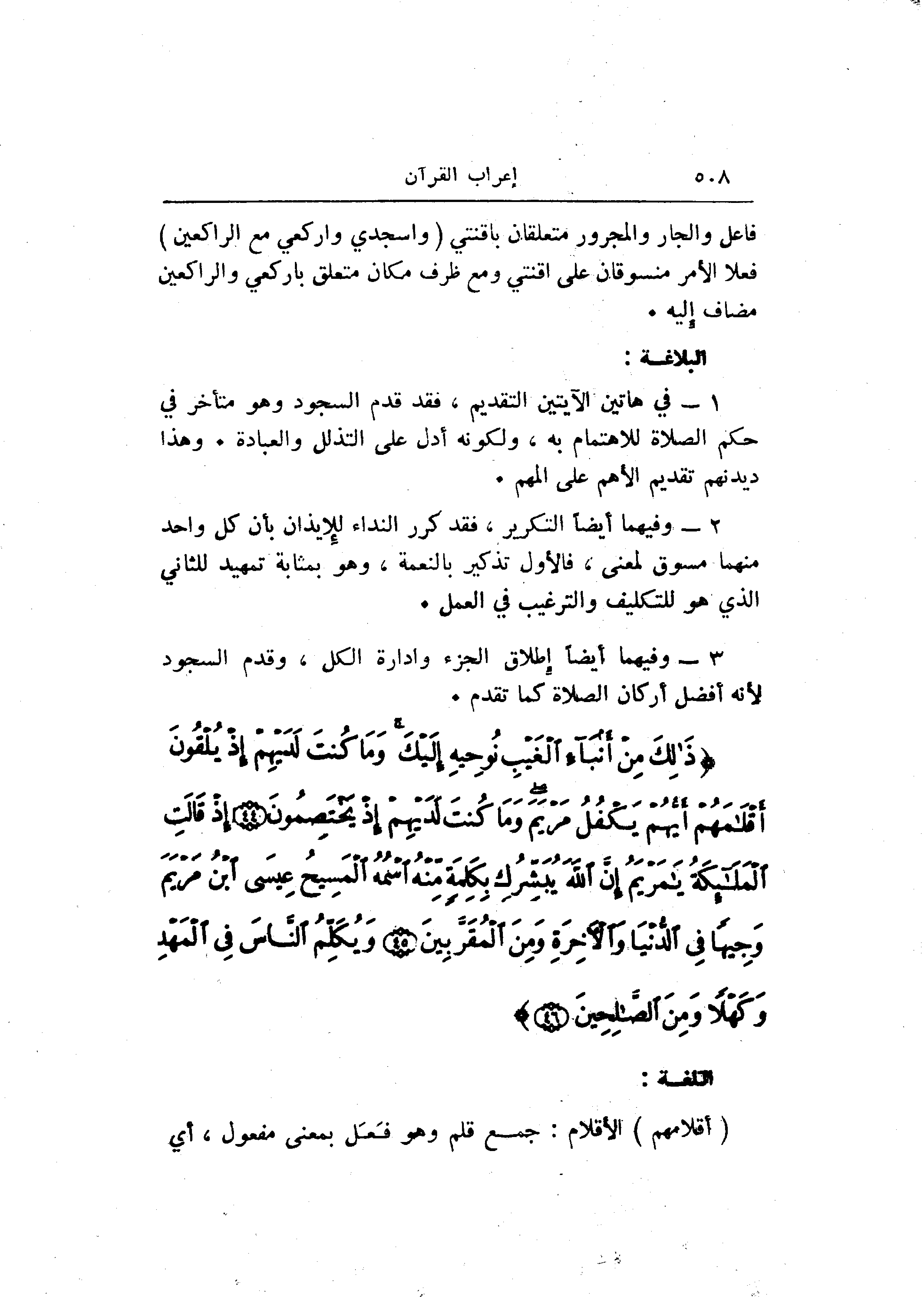 1- في هاتين الآيتين التقديم، فقد قدم السجود وهو متأخر في حكم الصلاة للاهتمام به، ولكونه أدل على التذلل والعبادة. وهذا ديدنهم تقديم الأهم على المهم.