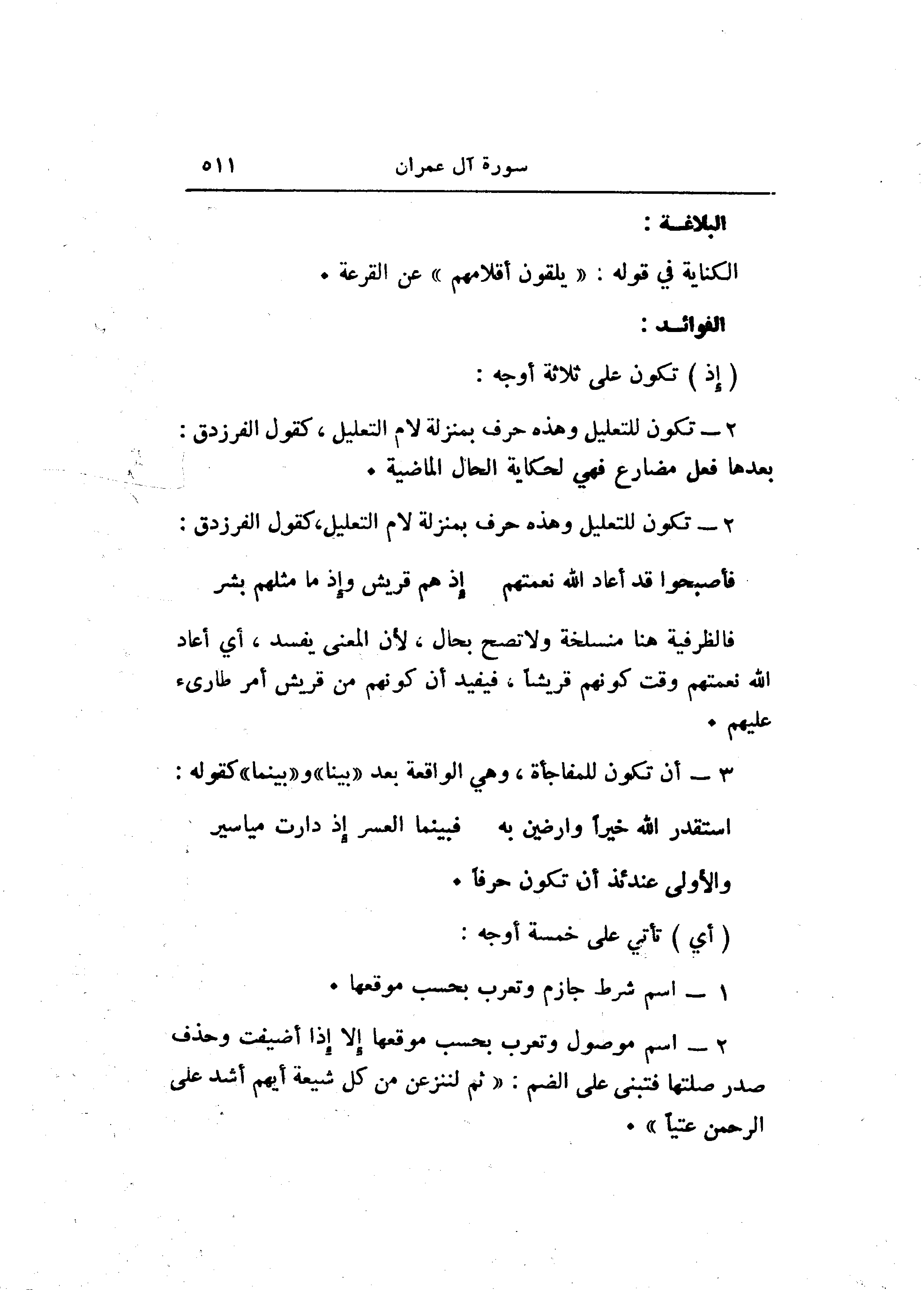 فالظرفية هنا منسلخة ولا تصح بحال، لأن المعنى يفسد، أي أعاد الله نعمتهم وقت كونهم قريشا، فيفيد أن كونهم من قريش أمر طارئ عليهم.