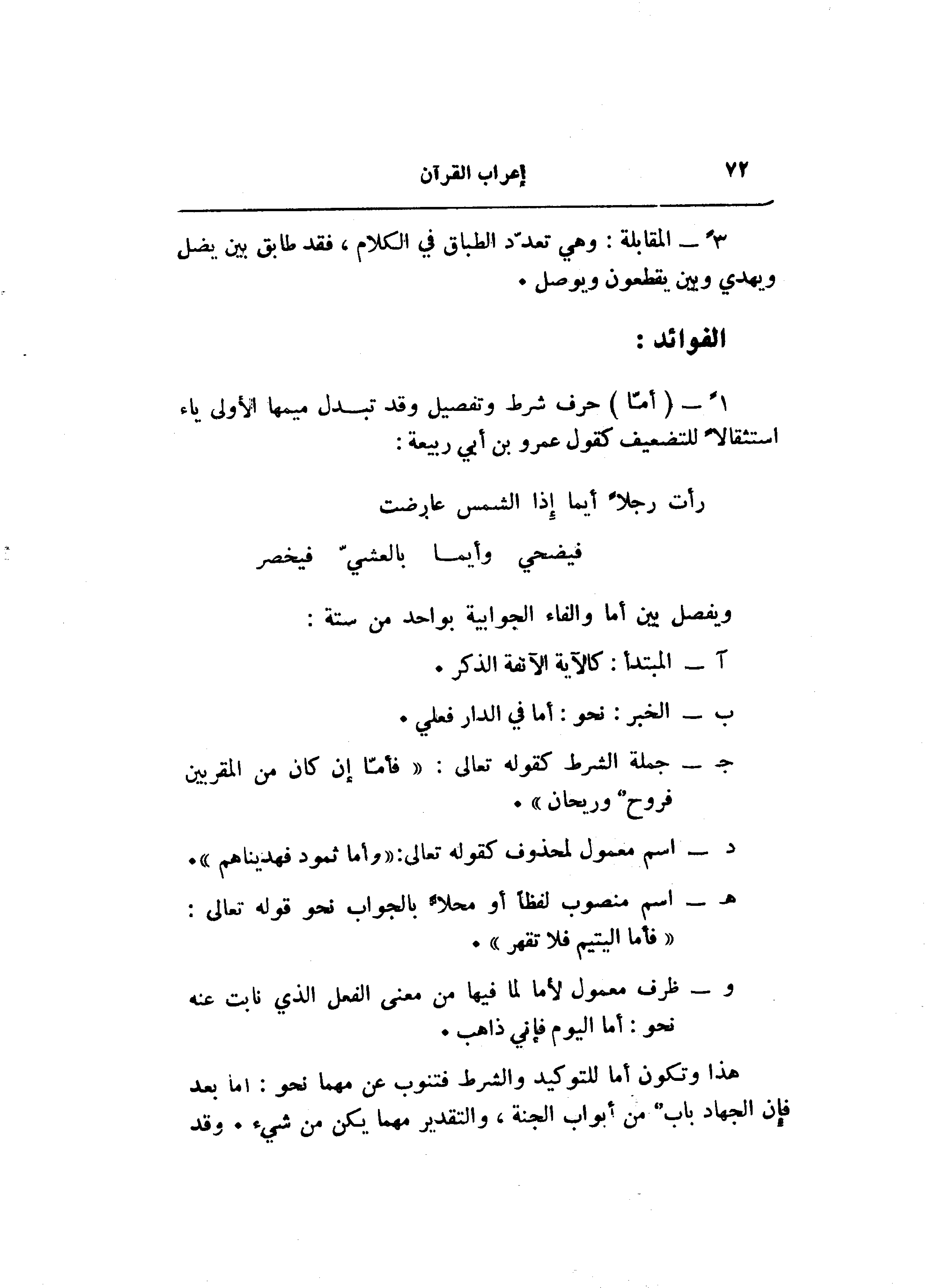 1- (أمّا) حرف شرط وتفصيل وقد تبدل ميمها الأولى ياء استثقالا للتضعيف كقول عمرو بن أبي ربيعة: