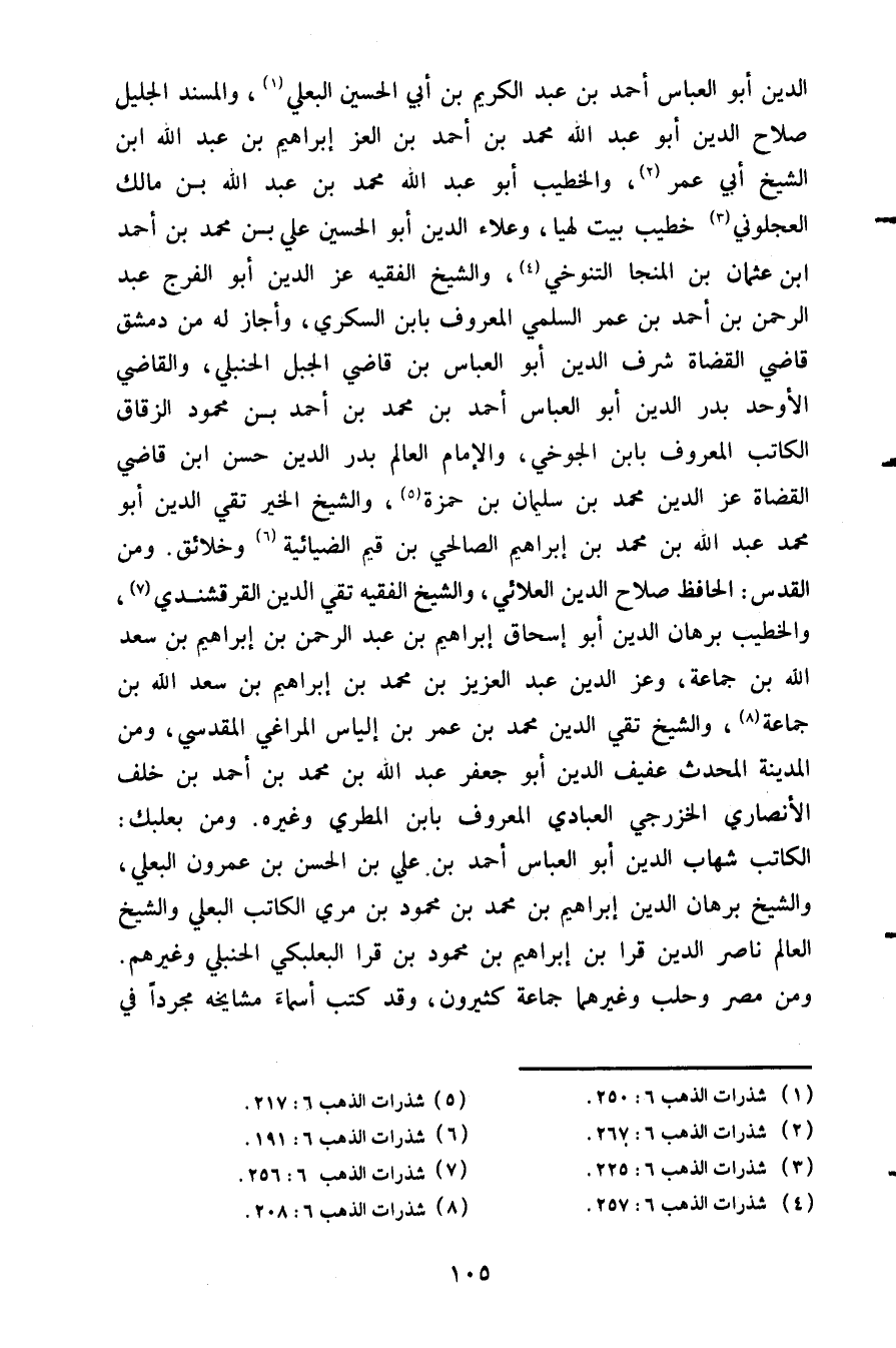الدين أبو العباس أحمد بن عبد الكريم بن أبي الحسين البعلي1 والمسند الجليل صلاح الدين أبو عبد الله محمد بن أحمد بن العز إبراهيم بن عبد الله ابن الشيخ أبي عمر2 والخطيب أبو عبد الله محمد بن عبد الله بن مالك العجلوني3 خطيب بيت لهيا وعلاء الدين أبو الحسين علي بن محمد بن أحمد ابن عثمان بن المنجا التنوخي4 والشيخ الفقيه عز الدين أبو الفرج عبد الرحمن بن أحمد بن عمر السلمي المعروف بابن السكري واجاز له من دمشق قاضي القضاة شرف الدين أبو العباس بن قاضي الجبل الحنبلي والقاضي الاوحد بدر الدين أبو العباس أحمد بن محمد بن أحمد بن محمود الزقاق الكاتب المعروف بإبن الجوخي والامام العالم بدر الدين حسن ابن قاضي القضاة عز الدين محمد بن سليمان بن حمزة5 والشيخ الخير تقي الدين أبو محمد عبد الله بن محمد بن إبراهيم الصالحي بن قيم الضيائية6 وخلائق ومن القدس الحافظ صلاح الدين العلائي والشيخ الفقيه تقي الدين القرقشندي7 والخطيب برهان الدين أبو اسحق إبراهيم بن عبد الرحمن بن إبراهيم بن سعد الله بن جماعة وعز الدين عبد العزيز بن محمد بن إبراهيم بن سعد الله بن جماعة8 والشيخ تقي الدين محمد بن عمر بن الياس المراغي المقدسي ومن المدينة المحدث عفيف الدين أبو جعفر عبد الله بن محمد بن أحمد بن خلف الانصاري الخزرجي العبادي المعروف بابن المطري وغيره ومن بعلبك الكاتب شهاب الدين أبو العباس أحمد بن علي بن الحسن بن عمرون البعلي والشيخ برهان الدين إبراهيم بن محمد بن محمود بن مري الكاتب البعلي والشيخ العالم ناصر الدين قرأ بن إبراهيم بن محمود بن قرا البعلبكي الحنبلي وغيرهم ومن مصر وحلب وغيرهما جماعة كثيرون وقد كتب أسماء مشايخه مجردا في