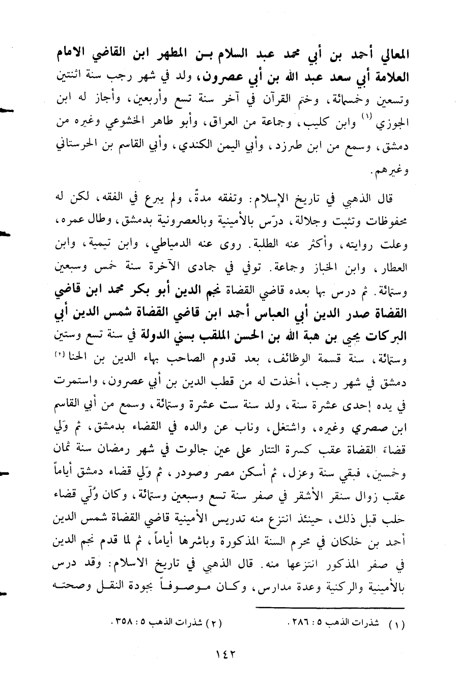 قال الذهبي في تاريخ الإسلام: وتفقه مدة ولم يبرع في الفقه لكن له محفوظات وتثبت وجلالة درس بالأمينية وبالعصرونية بدمشق وطال عمره وعلت روايته وأكثر عنه الطلبة روى عنه الدمياطي وابن تيمية وابن العطار وابن الخباز وجماعة توفي في جمادى الآخرة سنة خمس وسبعين وستمائة ثم درس بها بعده قاضي القضاة نجم الدين أبو بكر محمد ابن قاضي القضاة صدر الدين أبي العباس أحمد ابن قاضي القضاة شمس الدين أبي البركات يحيى بن هبة الله بن الحسن الملقب بسني الدولة في سنة تسع وستين وستمائة سنة قسمة الوظائف بعد قدوم الصاحب بهاء الدين بن الحنا2 دمشق في شهر رجب أخذت له من قطب الدين بن أبي عصرون واستمرت في يده إحدى عشرة سنة ولد سنة ست عشرة وستمائة وسمع من أبي القاسم ابن صصري وغيره واشتغل وناب عن والده في القضاء بدمشق ثم ولي قضاء القضاة عقب كسرة التتار على عين جالوت في شهر رمضان سنة ثمان وخمسين فبقي سنة وعزل ثم اسكن مصر وصودر ثم ولي قضاء دمشق أياما عقب زوال سنقر الأشقر في صفر سنة تسع وسبعين وستمائة وكان ولي قضاء حلب قبل ذلك حينئذ انتزع منه تدريس الأمينية قاضي القضاة شمس الدين أحمد بن خلكان في محرم السنة المذكورة وباشرها أياما ثم لما قدم نجم الدين في صفر المذكور انتزعها منه. قال الذهبي في تاريخ الإسلام: وقد درس بالأمينية والركنية وعدة مدارس وكان موصوفا بجودة النقل وصحته