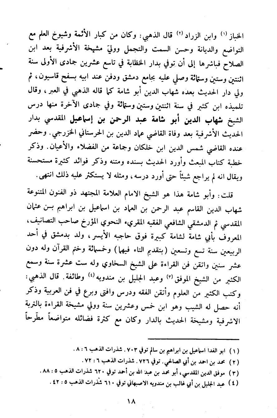 3 موفق الدين المقدسي، أبو محمد بن عبد الله بن أحمد توفي سنة 620هـ. شذرات الذهب 5: 88.
