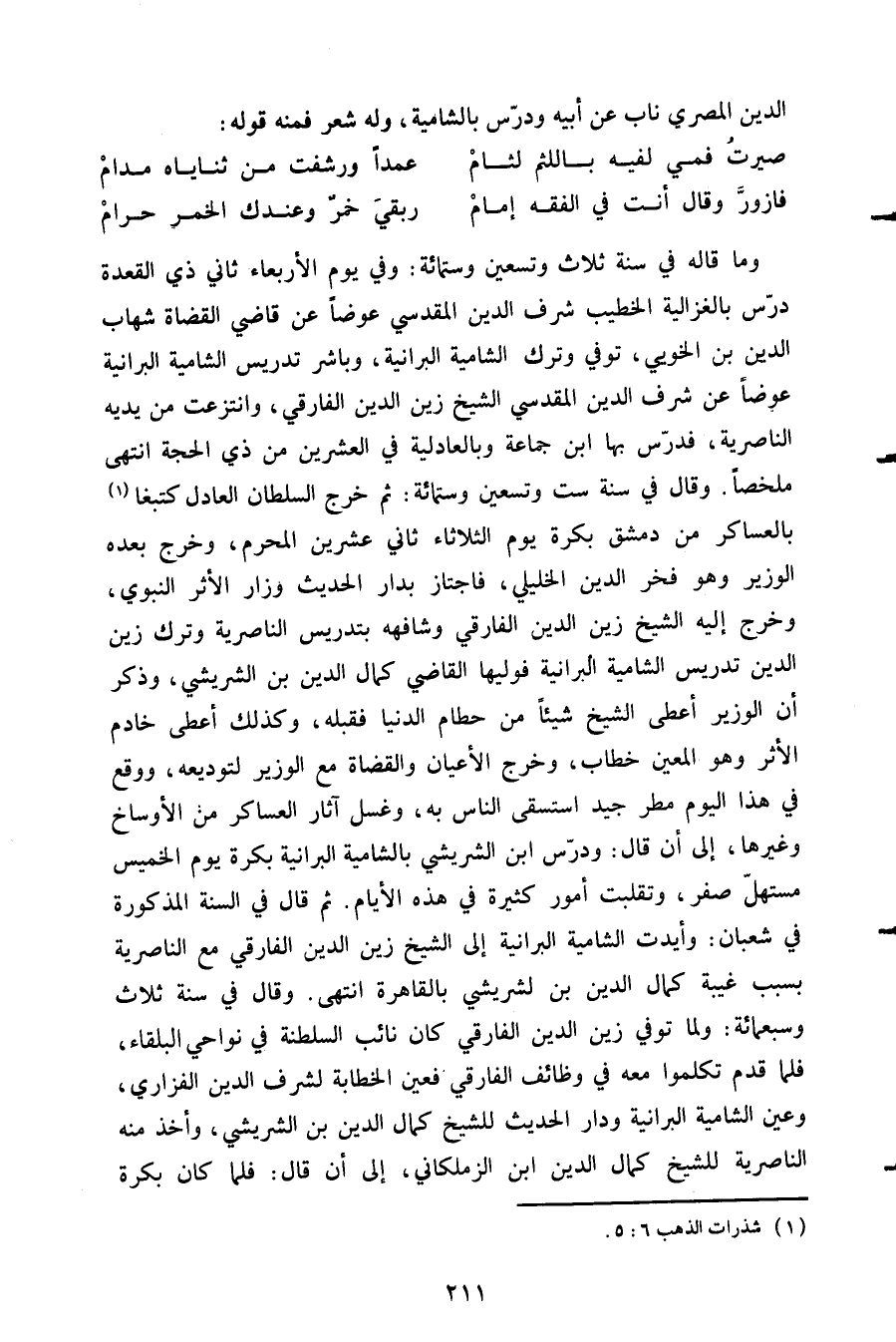 الدين المصري ناب عن أبيه ودرس بالشامية وله شعر فمنه قوله صيرت فمي لفيه باللثم لثام ... عمدا ورشفت من ثناياه مدام فازور وقال أنت في الفقه إمام ... ريقي خمر وعندك الخمر حرام