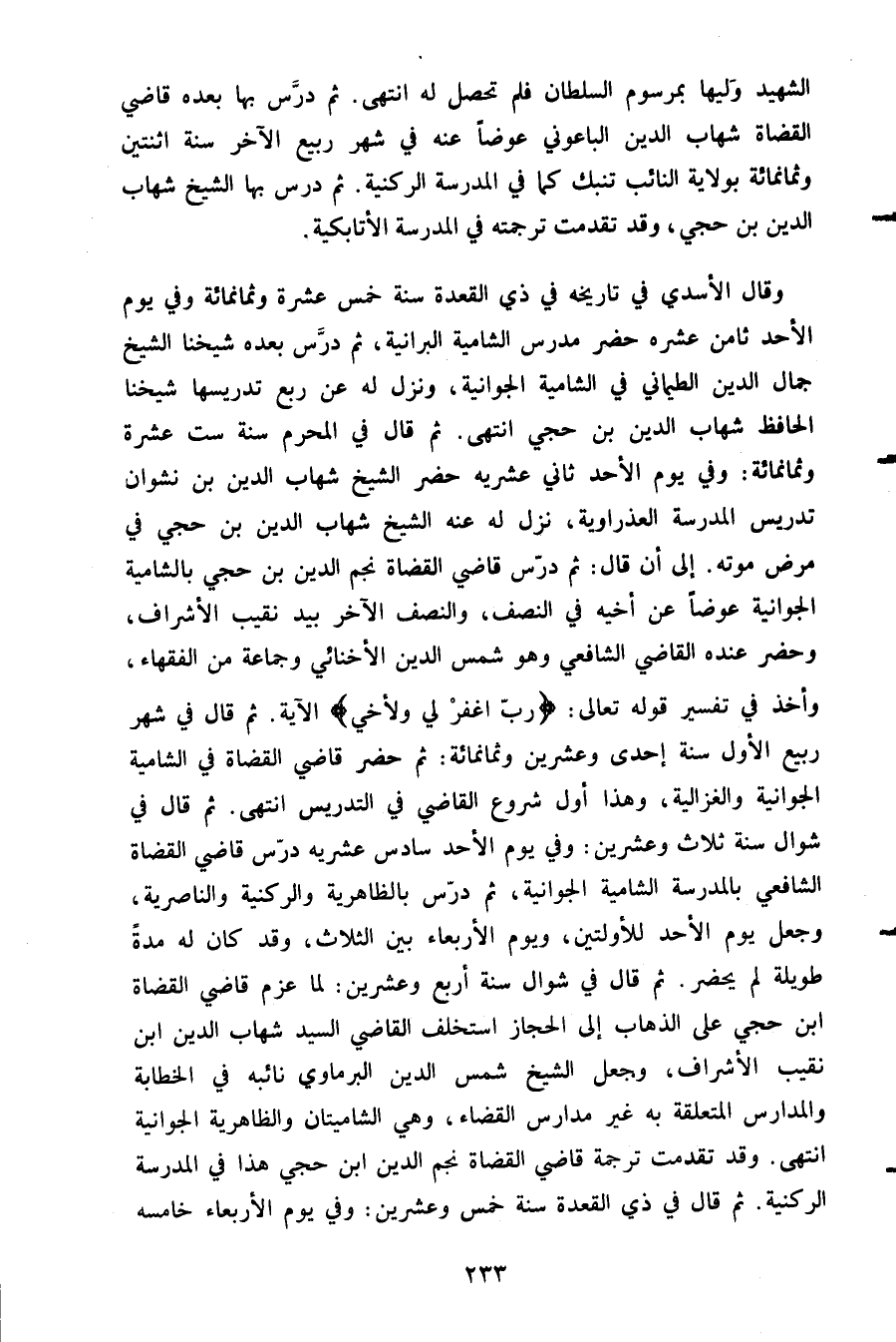 الشهيد وليها بمرسوم السلطان فلم تحصل له انتهى. ثم درس بها بعده قاضي القضاة شهاب الدين الباعوني عوضا عنه في شهر ربيع الآخر سنة اثنتين وثمانمائة بولاية النائب تنبك كما في المدرسة الركنية ثم درس بها الشيخ شهاب الدين بن حجي وقد تقدمت ترجمته في المدرسة الأتابكية.