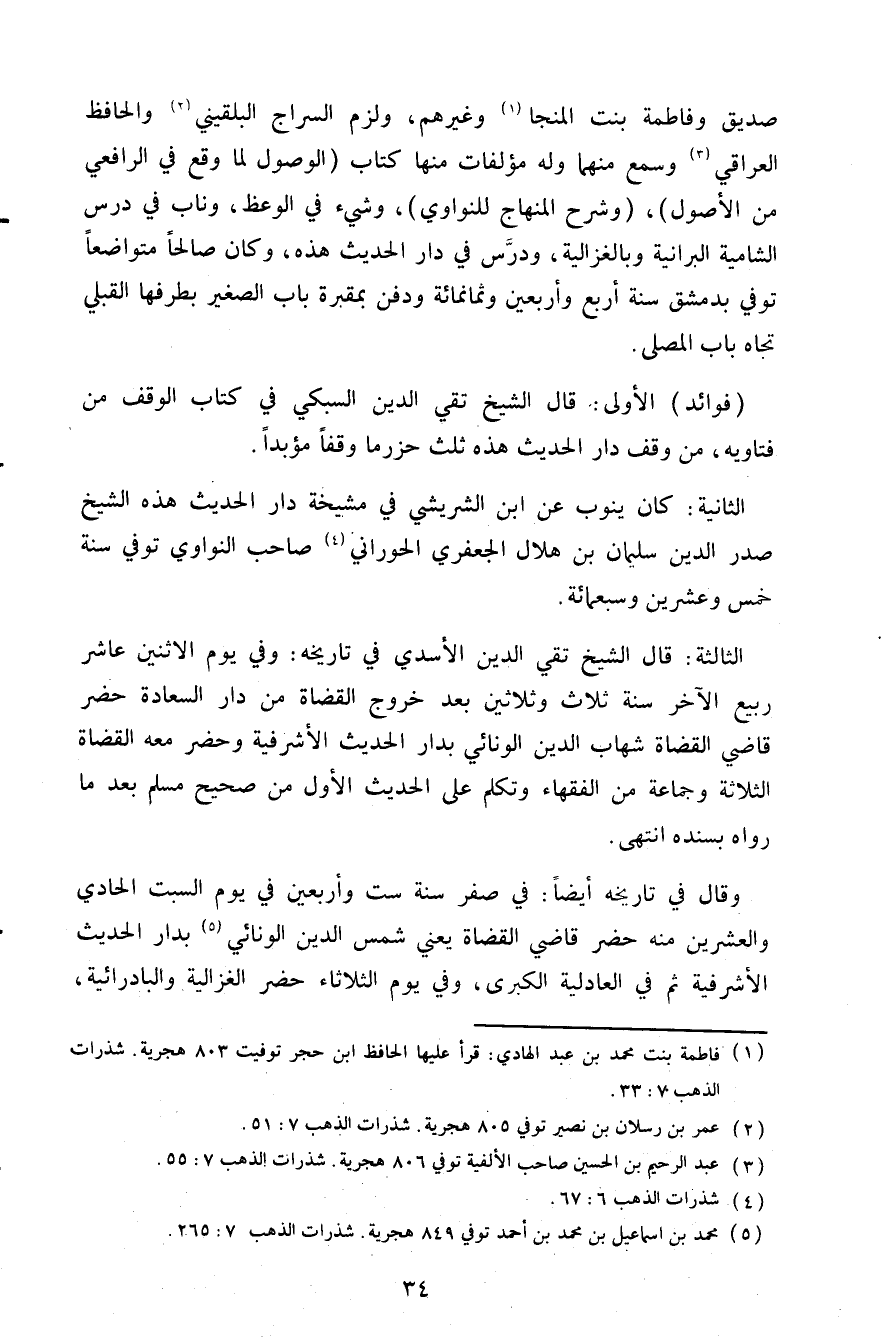 1 فاطمة بنت محمد بن عبد الهادي: قرأ عليها الحافظ ابن حجر توفيت سنة 803هـ. شذرات الذهب 7: 33.