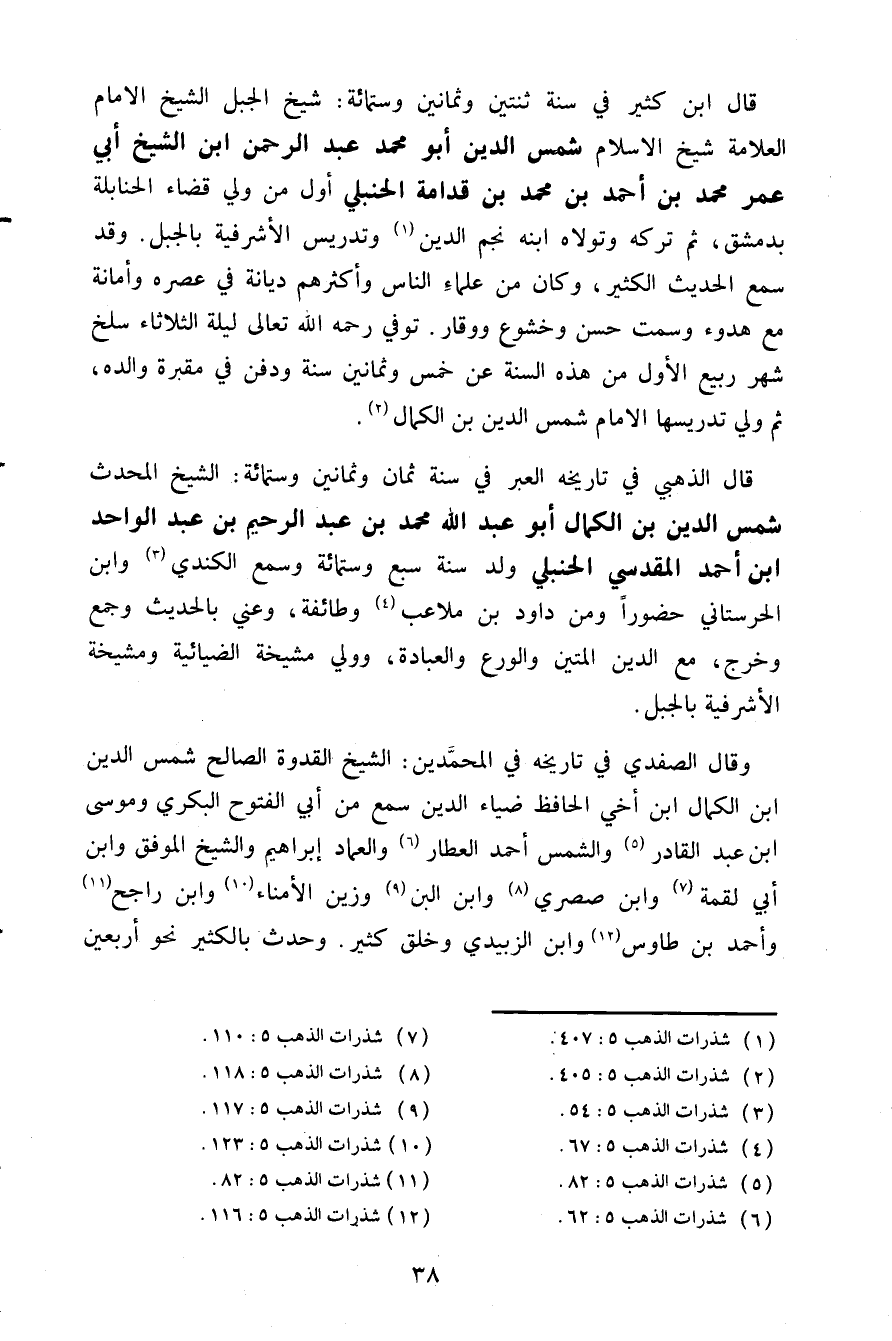 قال الذهبي في تاريخه العبر في سنة ثمان وثمانين وستمائة الشيخ المحدث شمس الدين بن الكمال أبو عبد الله محمد بن عبد الرحيم بن عبد الواحد ابن أحمد المقدسي الحنبلي ولد سنة سبع وستمائة وسمع الكندي3 وابن الحرستاني حضورا ومن داود بن ملاعب4 وطائفة وعني بالحديث وجمع وخرج مع الدين المتين والورع والعبادة وولي مشيخة الضيائية ومشيخة الأشرفية بالجبل.