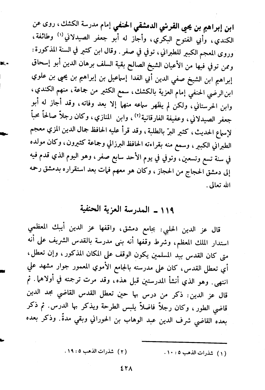 ابن إبراهيم بن يحيى القرشي الدمشقي الحنفي إمام مدرسة الكشك روى عن الكندي وأبي الفتوح البكري وأجاز له أبو جعفر الصيدلاني1 وطائفة وروى المعجم الكبير للطبراني توفي في صفر. وقال ابن كثير في السنة المذكورة: وممن توفي فيها من الأعيان الشيخ الصالح بقية السلف برهان الدين أبو إسحاق إبراهيم ابن الشيخ صفي الدين أبي الفدا إسماعيل بن إبراهيم بن يحيى بن علوي ابن الرضي الحنفي إمام العزية بالكشك وسمع الكثير من جماعة منهم الكندي وابن الحرستاني ولكن لم يظهر سماعه منهما إلا بعد وفاته وقد أجاز له أبو جعفر الصيدلاني وعفيفة الفارقانية2 وابن المنازي وكان رجلا صالحا محبا لإسماع الحديث كثير البر بالطلبة وقد قرأ عليه الحافظ جمال الدين المزي معجم الطبراني الكبير وسمع منه بقراءته الحافظ البرزالي وجماعة كثيرون وكان مولده في سنة تسع وتسعين توفي في يوم الأحد سابع صفر وهو اليوم الذي قدم فيه إلى دمشق الحجاج من الحجاز وكان هو معهم فمات بعد استقراره بدمشق رحمه الله تعالى.