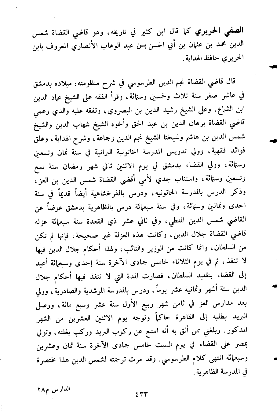 الصفي الحريري كما قال ابن كثير في تاريخه: وهو قاضي القضاة شمس الدين محمد بن عثمان بن أبي الحسن بن عبد الوهاب الأنصاري المعروف بابن الحريري حافظ الهداية.