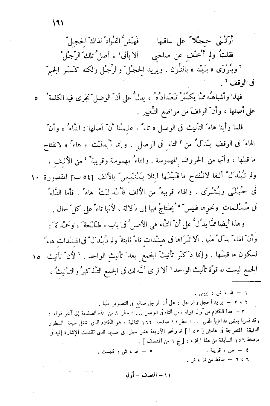 3 هذا الكلام من أول قوله: "من التاء في الوصل...." سطر 8 من هذه الصفحة إلى آخر قوله: "وقد فسرنا بعض هذا فيما مضى ... "سطر 11 صفحة 162 التالية: هو الكلام الذي شغل سبعة السطور الدقيقة المتعرجة في هامش ظ، ونحو الأربعة عشر سطرا في صلبها الذي تقدمت الإشارة إليه في صفحة 156 السابقة من هذا الجزء "ج 1 من المنصف".